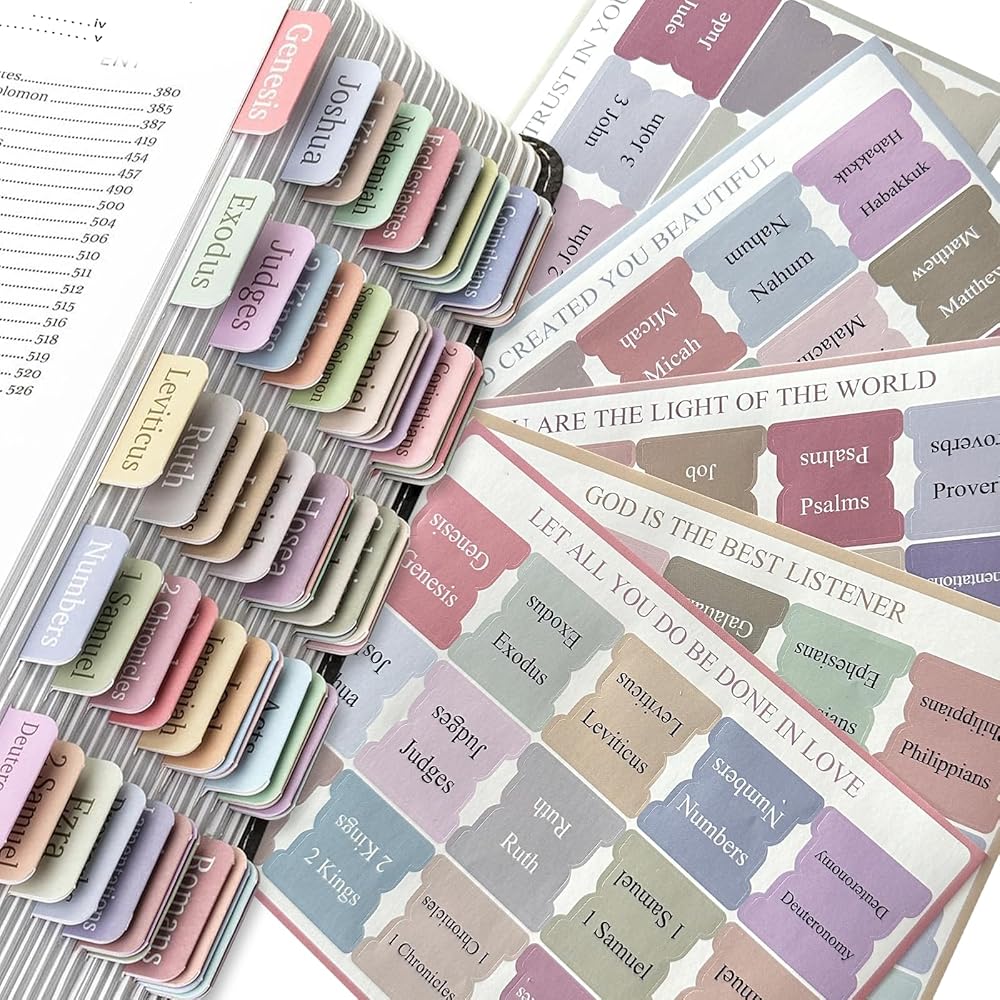 Bible tabs is safe, waterproof, tear-resistant and durable. The large font and clear printing is very bible study friendly and provides a handy organisational tool for those wishing to keep a bible journal.