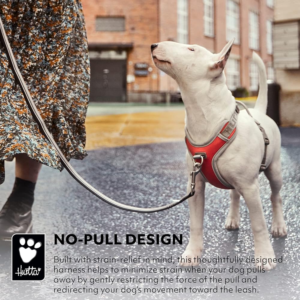 • Built with strain-relief in mind, this thoughtfully designed harness helps to minimize strain when your dog pulls away by gently restricting the force of the pull and redirecting your dog's movement toward the leash
