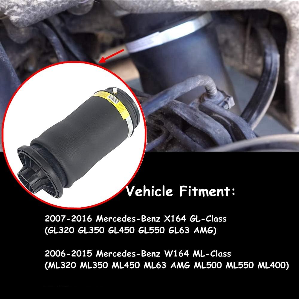 يناسب زنبرك التعليق الهوائي 2007 - 2009 GL320، 2010 - 2015 GL350، 2007 - 2015 GL450/GL550، 2013 - 2015 GL63 AMG، 2007 - 2009 ML320، 2006 - 2015 ML350، 2010 - 2011 مل 450/ مل 63 ايه ام جي، 2005 - 2007 ML500, 2008 - 2015 ML550, 2015 ML400.