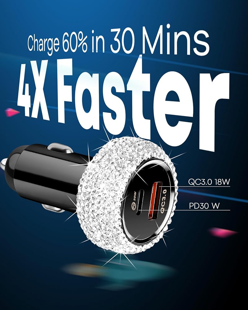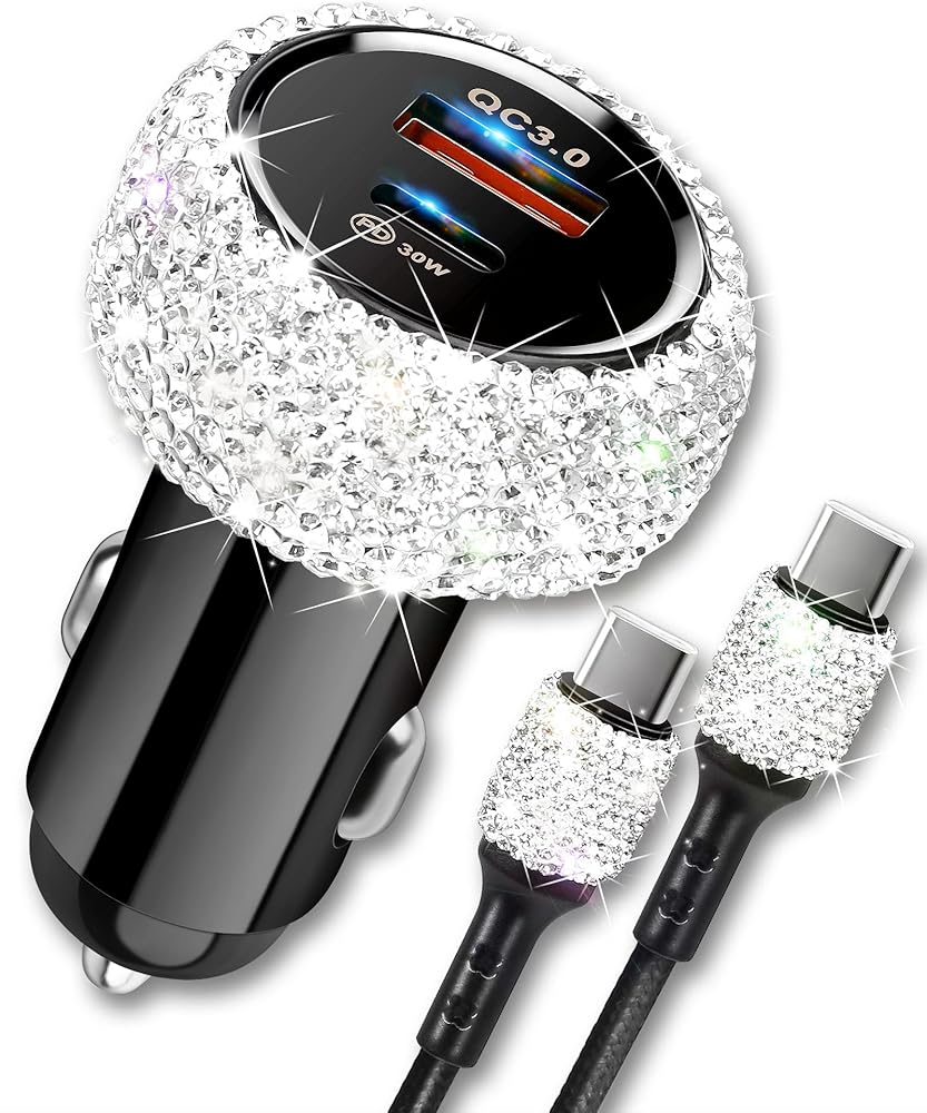 - تصميم كريستال بلينغ: شاحن سيارة وكابل من النوع C مع أحجار الراين، وزخرفة لامعة. فكرة هدية جيدة للنساء والفتيات اللاتي لديهن سيارة.