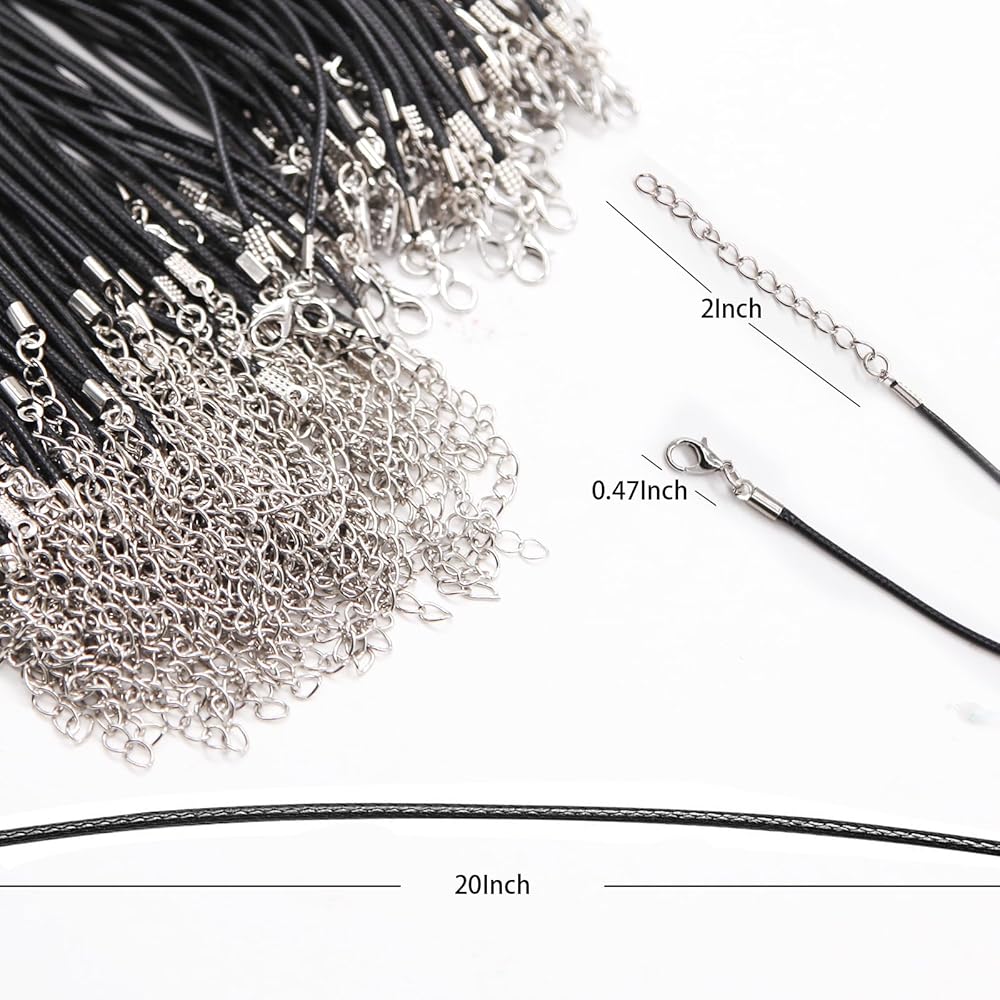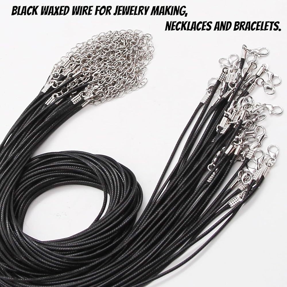 LET'S MAKING سلك قلادة مشمع لصنع المجوهرات، سلاسل جلدية للقلادة مع مشبك للقلادات لوازم الخرز (طول 20 بوصة/100 قطعة/أسود)