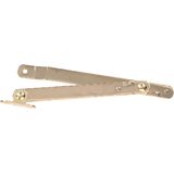 Folding Supports are used to support the drop lids of desks, cabinet doors, table legs, chest lids and furniture applications. The double-arm folding support features a slotted slide action for smooth operation. The legs are braced in open position and lay flat against the table in the closed position. It is easily installed and the necessary fasteners are included.