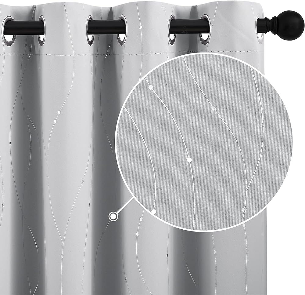 • خيوط فضية: خطوط الموجة الفضية الكلاسيكية ونمط النقاط على خلفية رمادية فضية تعطي الستائر مظهرًا أنيقًا وحصريًا. النمط الفضي مثالي تمامًا، حيث يلتقط الضوء بشكل جميل ويمنح غرفتك أجواء دافئة جدًا وأنيقة ومريحة.