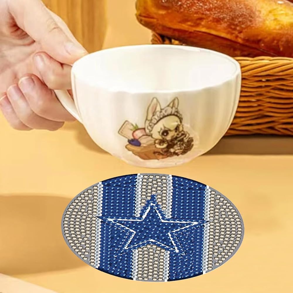 DIAMOND PAINTING KITS EASY FOR BEGINNERS- Our Fooball coaster diamond painting kits have clear numbers marked to correspond to the numbers on the diamond bag, stick the cork pad on the back of the coaster, even diamond painting beginners can easily make perfect coasters.
