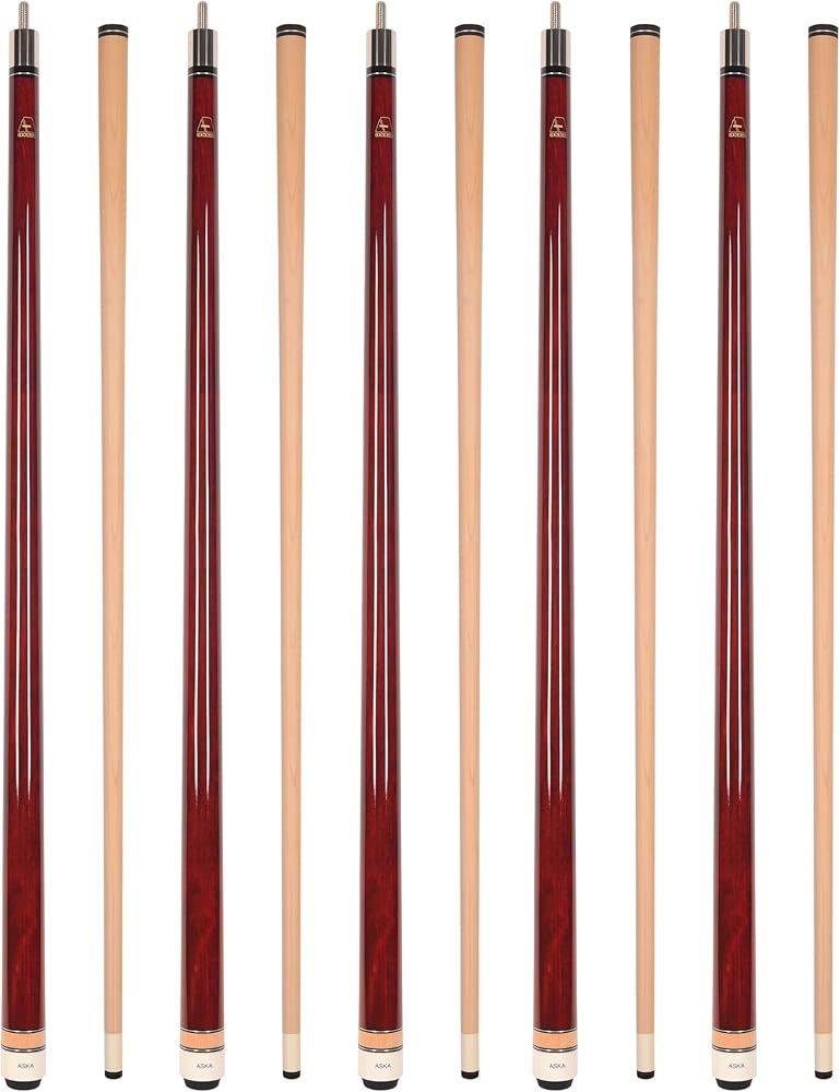 ASKA Set of Wrapless 2-Piece Billiard Pool Cue Sticks L3, 58" Hard Rock Canadian Maple, 13mm Hard Leather Tip