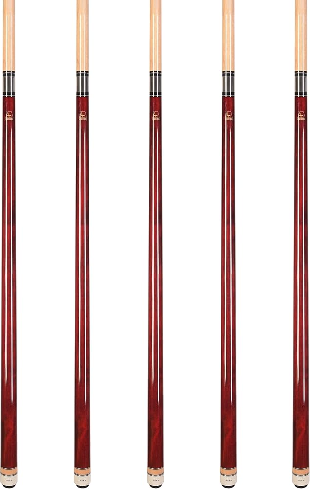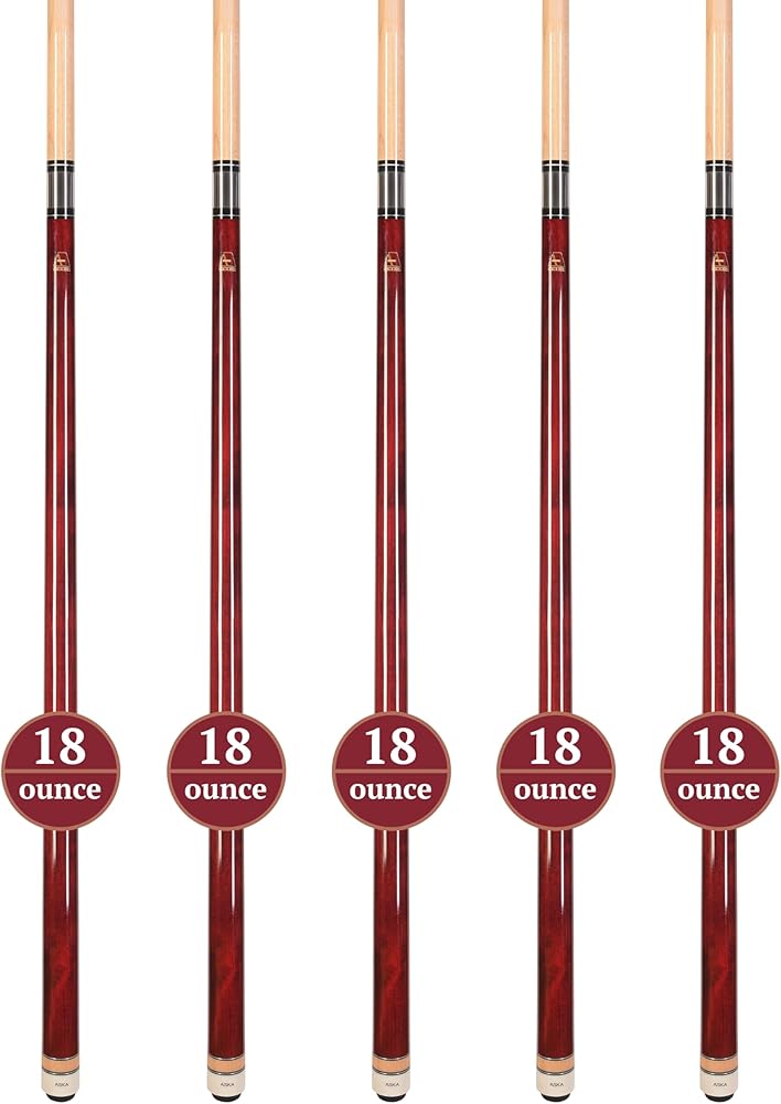 - Set of 5 Brown Pool Cue Sticks, all 19-ounce