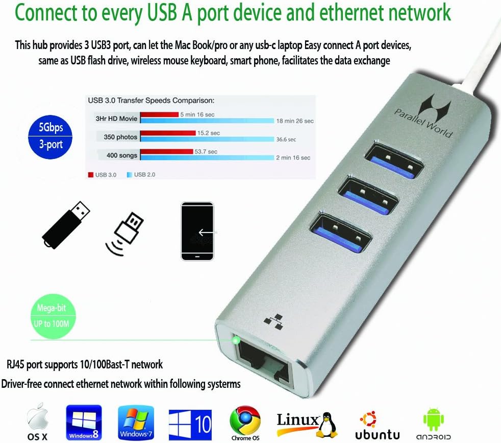 USB networking adaptor: Driver-Free Plug and Play(Mac OS/Win10/8/7 and Chrome OS) Megabit Ehternet port provides access to super speeds network.