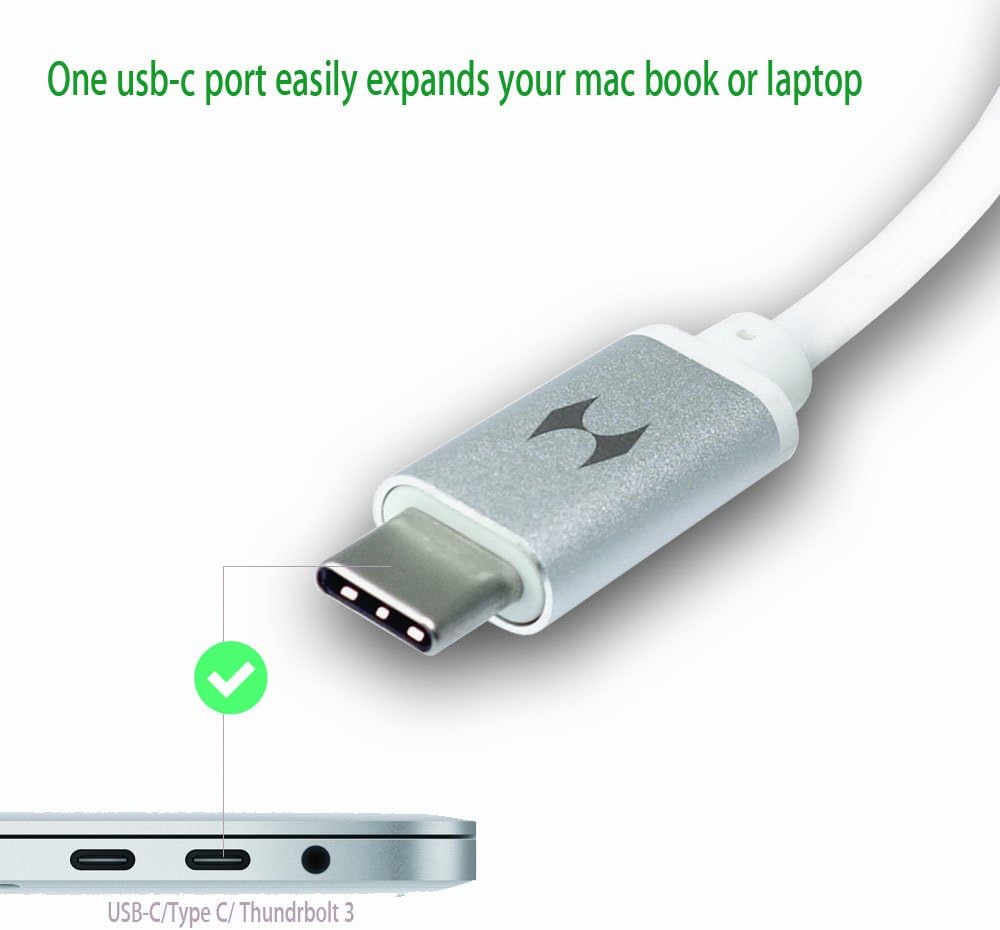 USB-C to 3-port 3.0 hub:Super Speed 3 USB Port provides 3 lanes up to 5 Gbps data USB 3 Fasting transfers lager files and HD movies in seconds.Compatible with USB 3 USB 2 and USB 1.1 version devices(eg: wireless mouse keyboard adapter, hard disk, usb flash storage ).