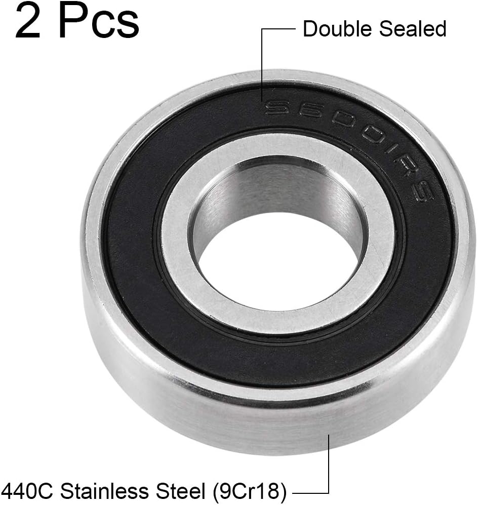 Uxcell S6001-2RS محامل الكرات الأخدود العميق 12 مم × 28 مم × 8 مم مزدوجة مختومة 440C من الفولاذ المقاوم للصدأ 2 قطعة