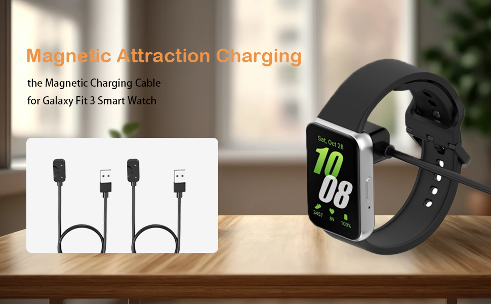 اتصال محكم: يعمل الشحن المغناطيسي القوي على محاذاة منطقة الشحن بسهولة مع ساعتك الذكية Galaxy Fit 3، مما يضمن كفاءة الشحن وسرعته، مما يوفر شحنًا سهلاً ومريحًا وإمساكًا ثابتًا.