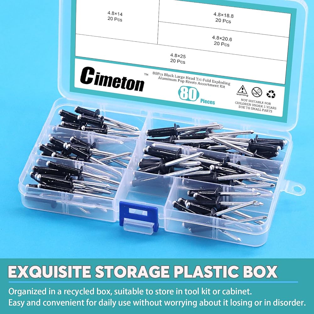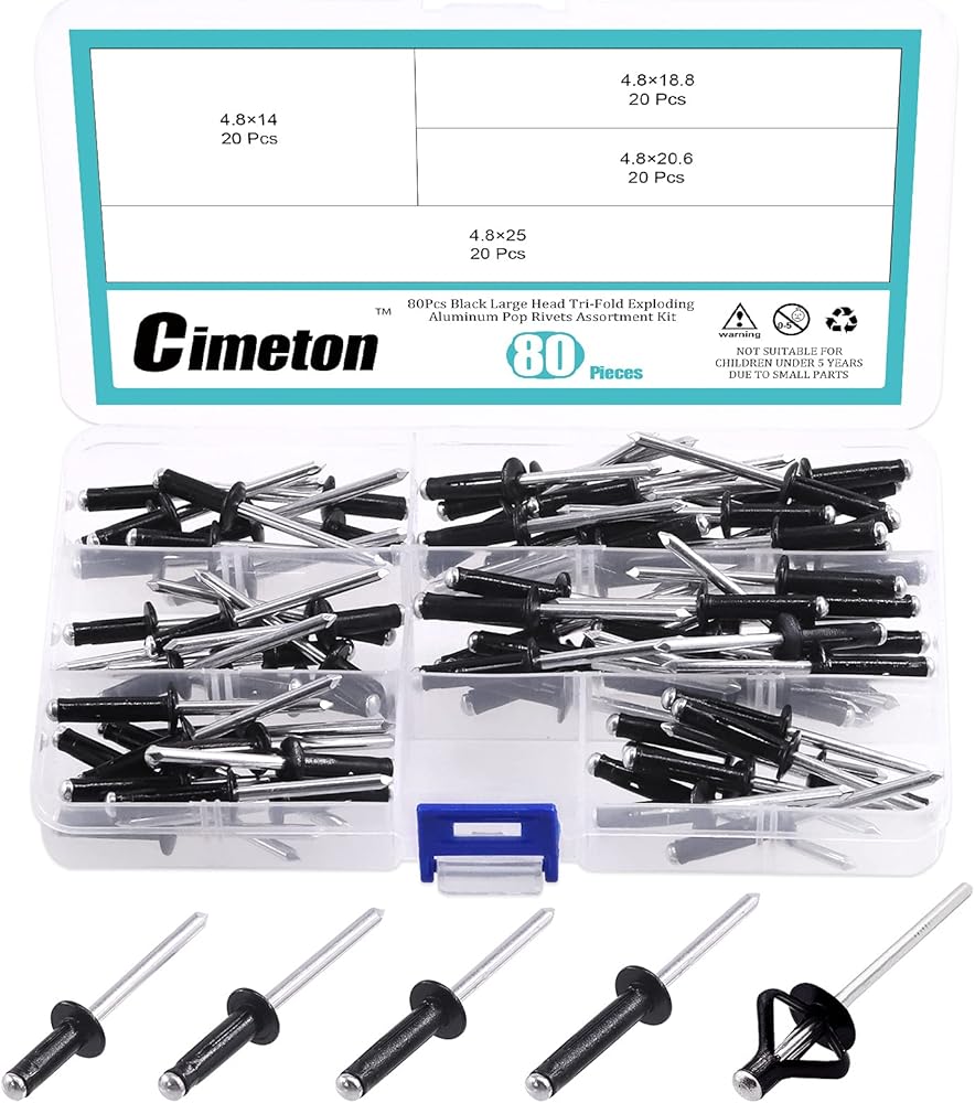 Cimeton 80Pcs 3/16" Long Grip Tri-Grip Rivets Tri-Fold Tri Bulb Long Pop Mounting Rivet Kit for Kayak and Boat Accessories