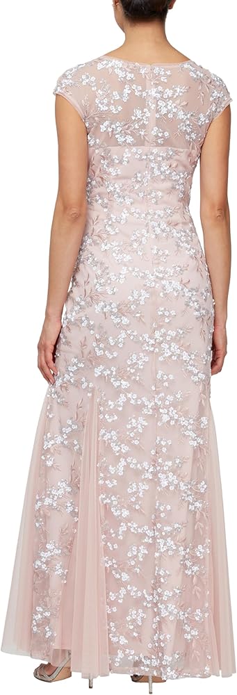 Step into elegance with the Alex Evenings Women's Floor Length Fit and Flare Gown, a captivating ensemble designed to exude timeless sophistication. Crafted with meticulous attention to detail, this gown features a graceful illusion v-neckline and delicate cap sleeves that enhance your silhouette with understated charm.