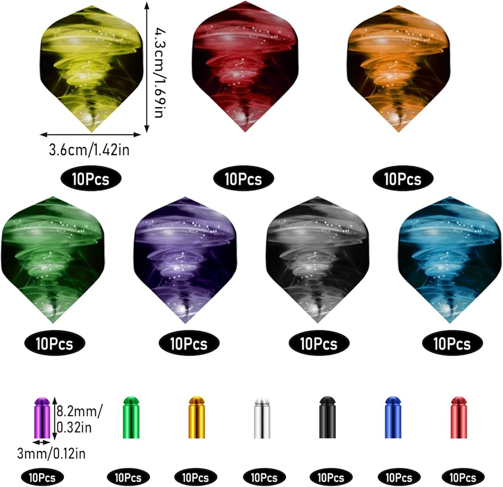 70 pcs Dart Flights and 70 pcs Dart Wing Corrector in 7 colors