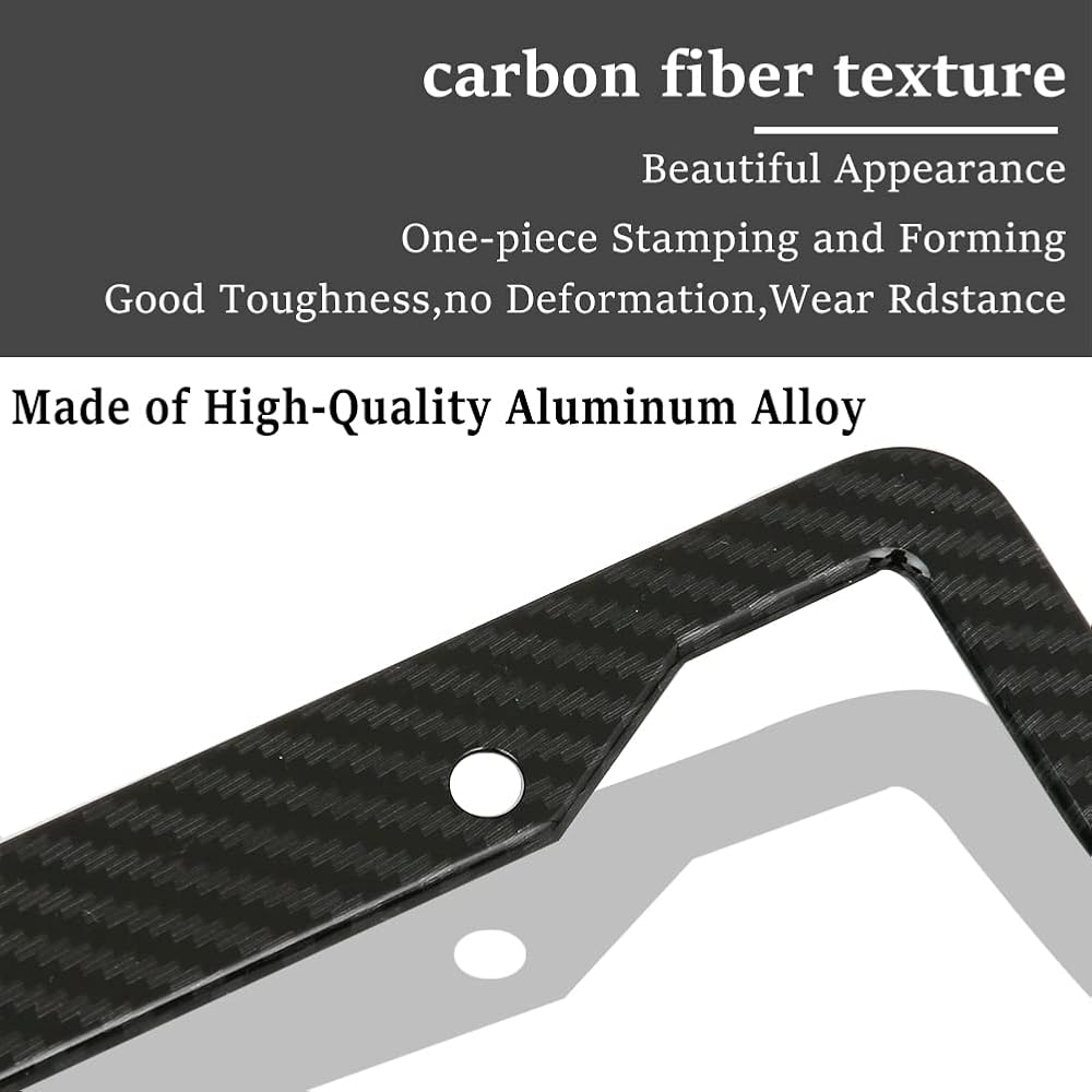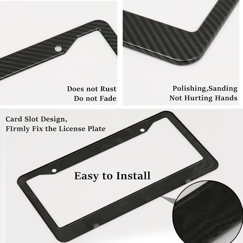PREMIUM QUALITY - The carbon fiber frame is weather resistant to withstand car washes and rain. Made of high-quality aluminum with a stylish bezel that won't wear out the car paint. Durable anti-peeling and anti-aging, corrosion-resistant frame.
