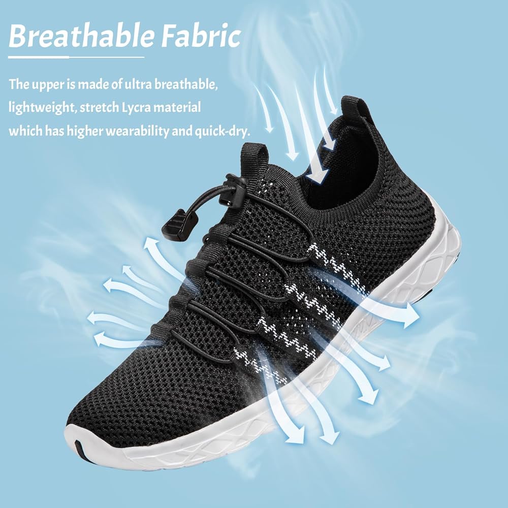 • مريح - خط عنق مرن لسهولة الارتداء والخلع. تتيح لك آلية القفل الخاصة بأحذية الشاطئ للرجال إمكانية ضبط إحكام أربطة الحذاء بحرية. أحذية أكوا ليك خفيفة الوزن ومرنة ستمنحك رحلة مريحة، يمكنك بسهولة حمل حذائك المائي إلى أي مكان تريد الذهاب إليه.