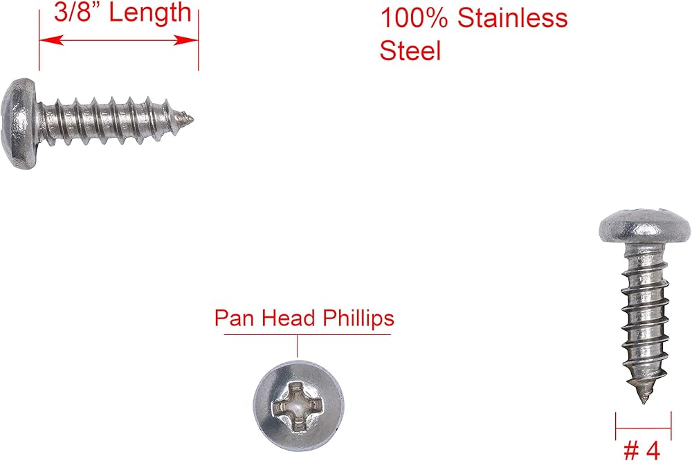 【الأبعاد】القطر: #4 | الطول: 3/8 بوصة | نوع الخيط: خشن (قياسي) | النقطة: النوع أ | الرأس: مقلاة | المحرك: فيليبس #1 | الكمية: 100 قطعة | المادة: 18-8 (304) من الفولاذ المقاوم للصدأ.