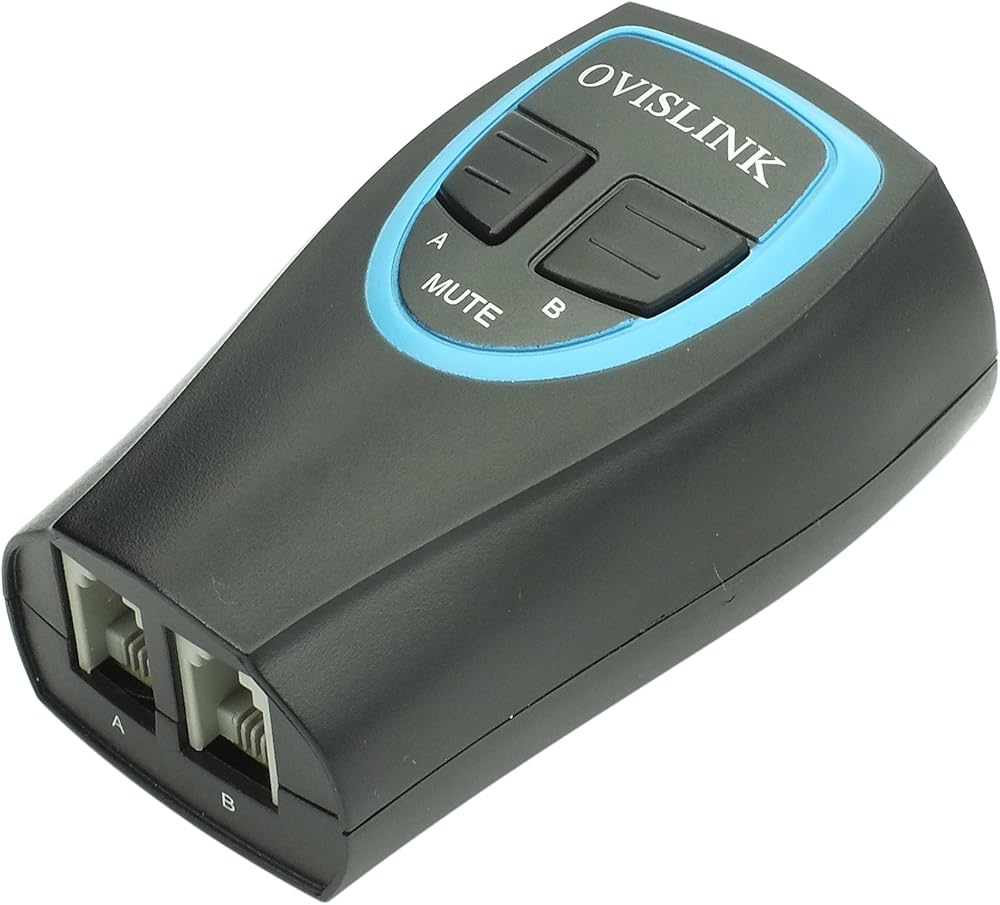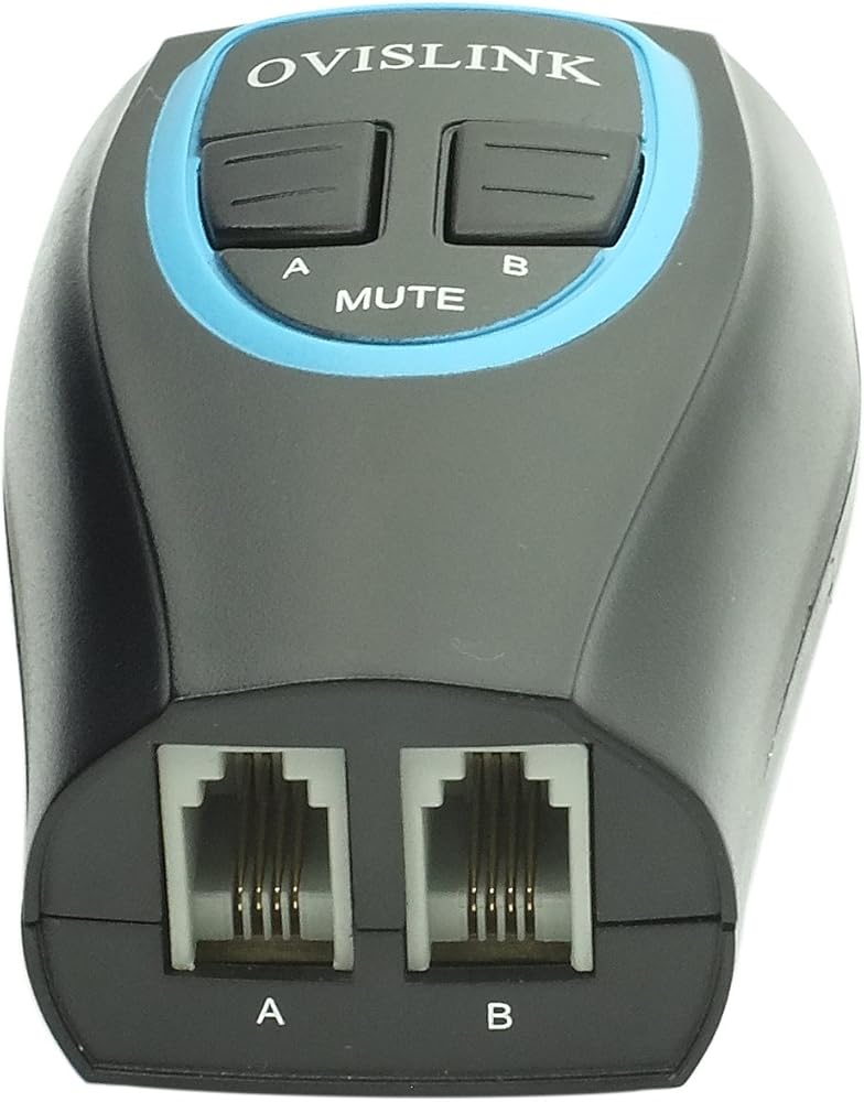 • ✅ OvisLink Training Adapter model OVT-12 connects two headsets to one telephone. Both connected headsets can talk and listen. Mute buttons to mute any one of the connected headsets anytime.