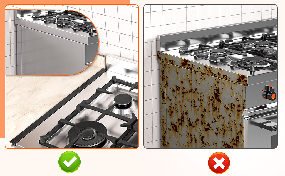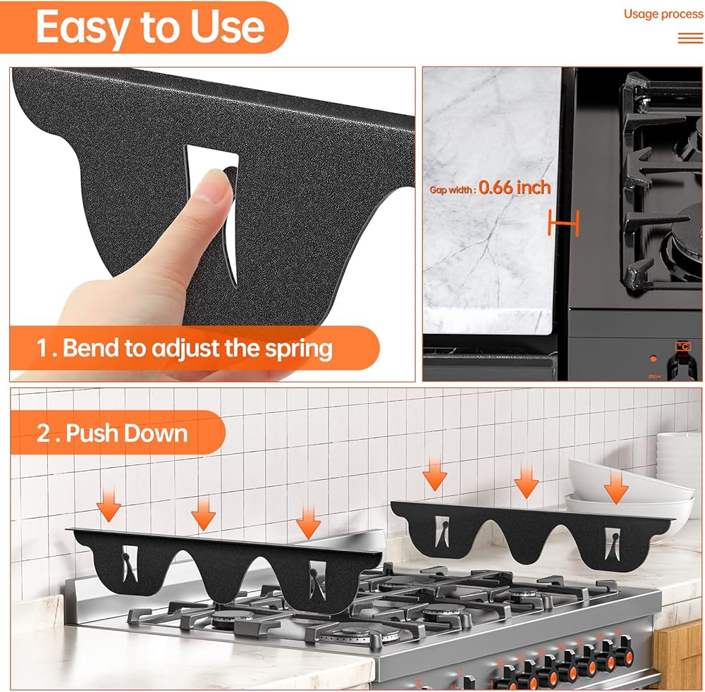 [سهلة التركيب] ما عليك سوى ثني الزنبرك ودفعه إلى الفجوة الجانبية للفرن. لا يلزم وجود شريط لاصق أو أجهزة للتثبيت. يمنع ذلك سقوط الأوساخ والحطام والانسكابات والأشياء الأخرى بين طبقات الموقد وسطح العمل وغيرها من الأماكن التي يصعب تنظيفها. حافظ على نظافة الموقد.