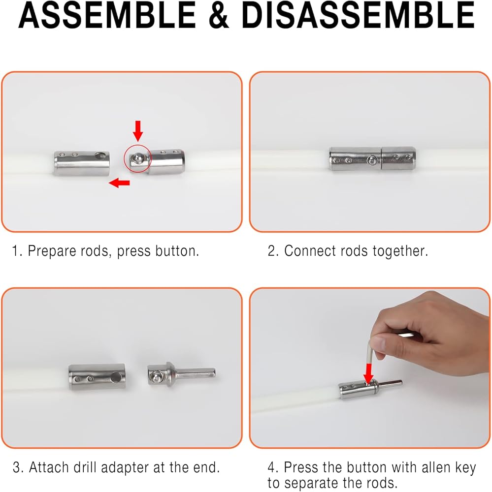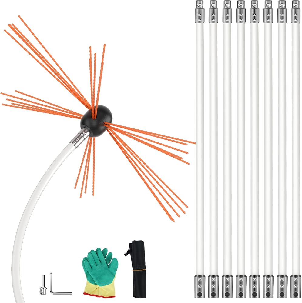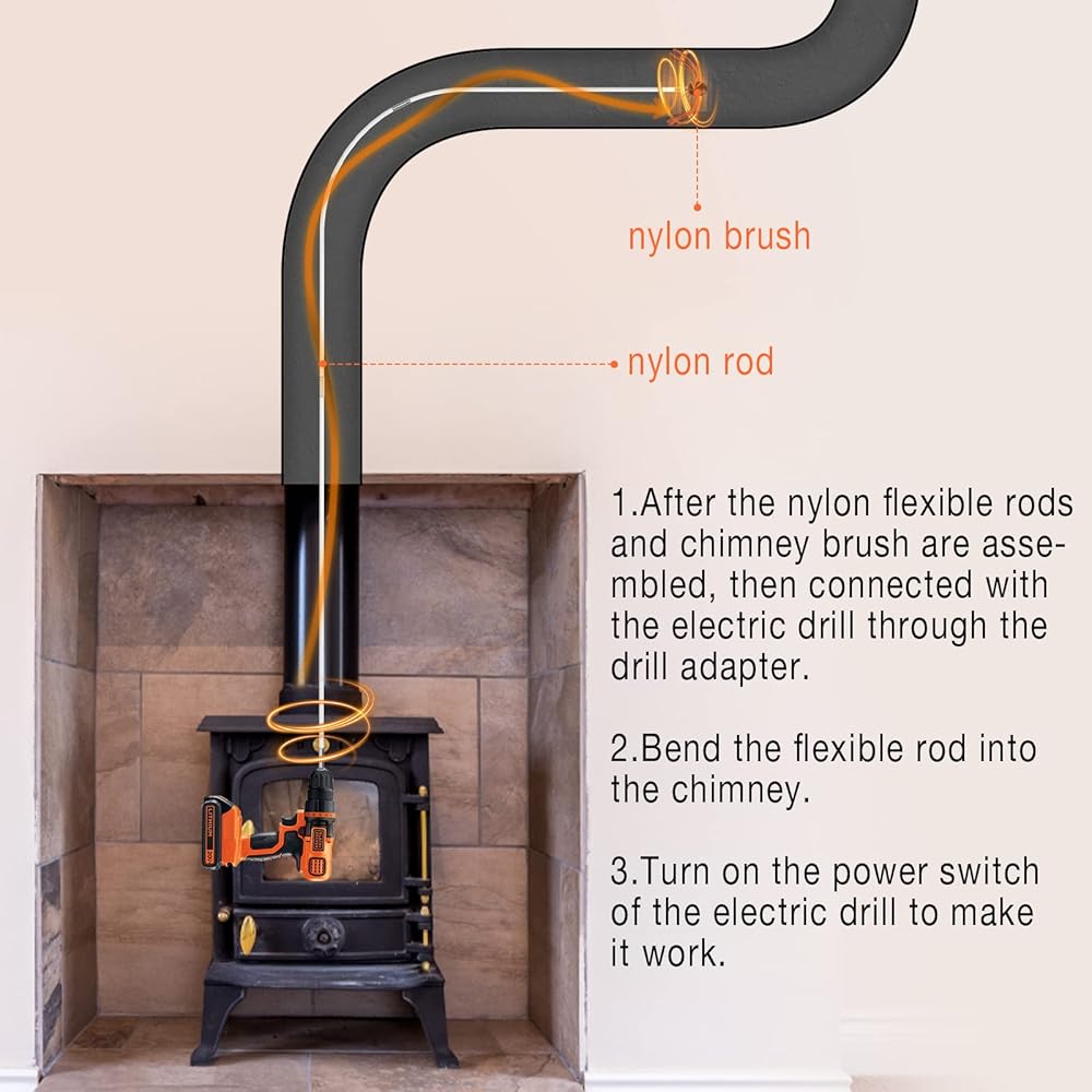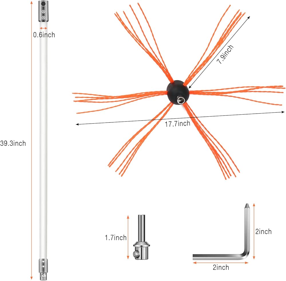 تنظيف مريح وفعال: بسبب نظام قفل زر الكروم، يمكنك إكمال تجميع وتفكيك مجموعة فرش المدخنة الخاصة بنا في وقت قصير. بالإضافة إلى ذلك، شعيرات الرأس السائبة بقطر 17.7 بوصة يمكن أن تحسن بشكل كبير من كفاءة تنظيف أنبوب المدخنة. وفر وقتك.