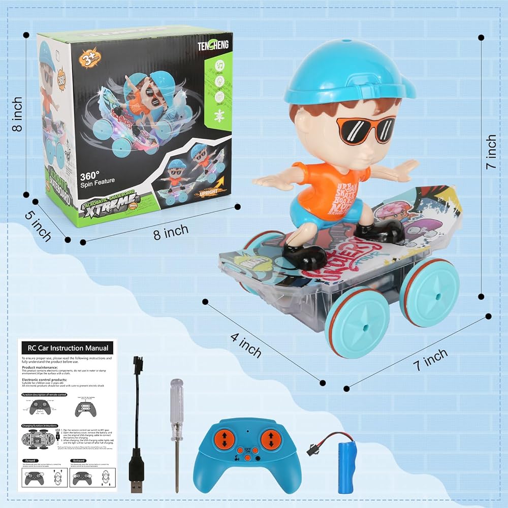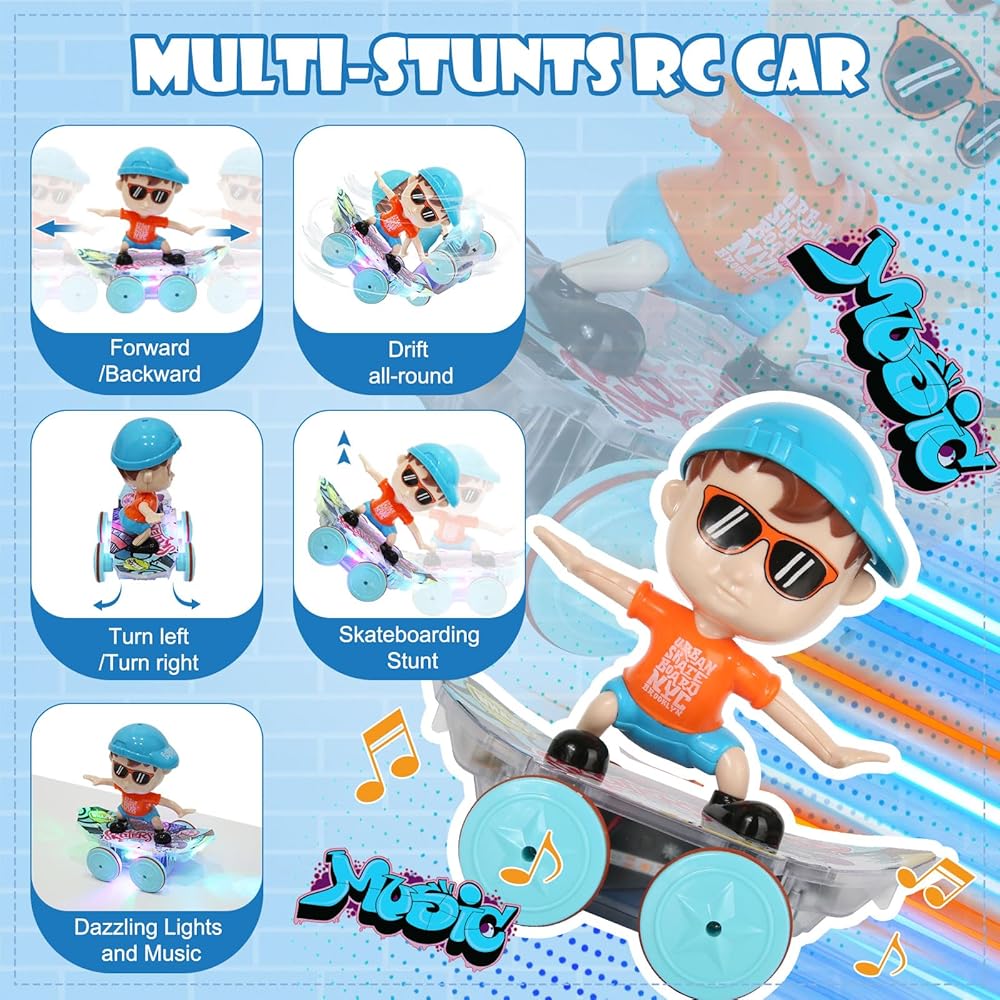 سيارة تحكم عن بعد، سيارة حيلة RC تدور 360 درجة مع ضوء LED وموسيقى، لوح تزلج 2.4 جيجا هرتز ألعاب سيارات RC للأطفال، أفكار هدايا عيد ميلاد رائعة لألعاب عيد الفصح لعمر 3 4 5 6 7 8-12+ سنة للأولاد والبنات