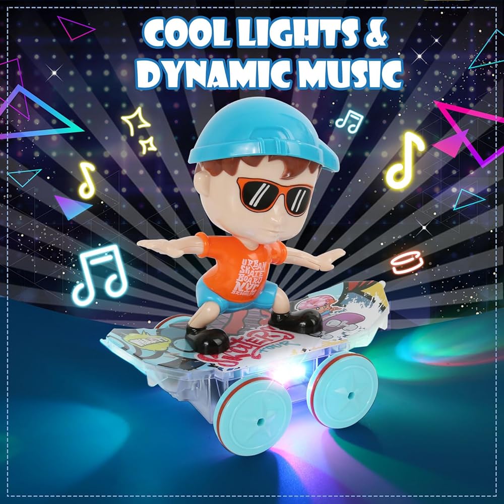 سيارة تزلج RC فريدة من نوعها: تتميز سيارة RC المثيرة هذه بشكل لوح تزلج فريد من نوعه، مصحوبة بالموسيقى الديناميكية وتأثيرات الإضاءة الملونة. يشبه تصميمه العام صبيًا صغيرًا يقف على لوح التزلج، مما يعطي انطباعًا بصبي يلعب على لوح التزلج عند تشغيل الوظيفة الأمامية، مما يجعله يبدو رائعًا للغاية.