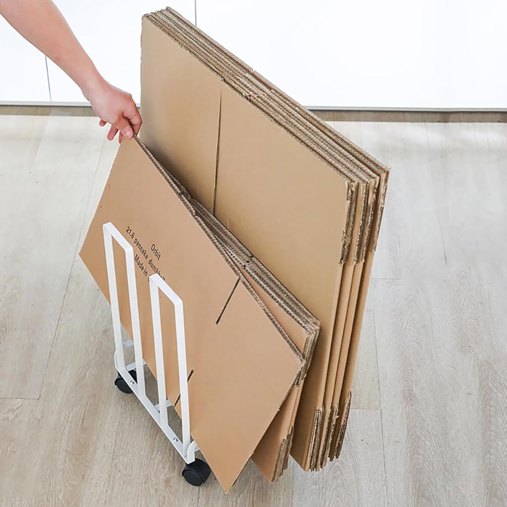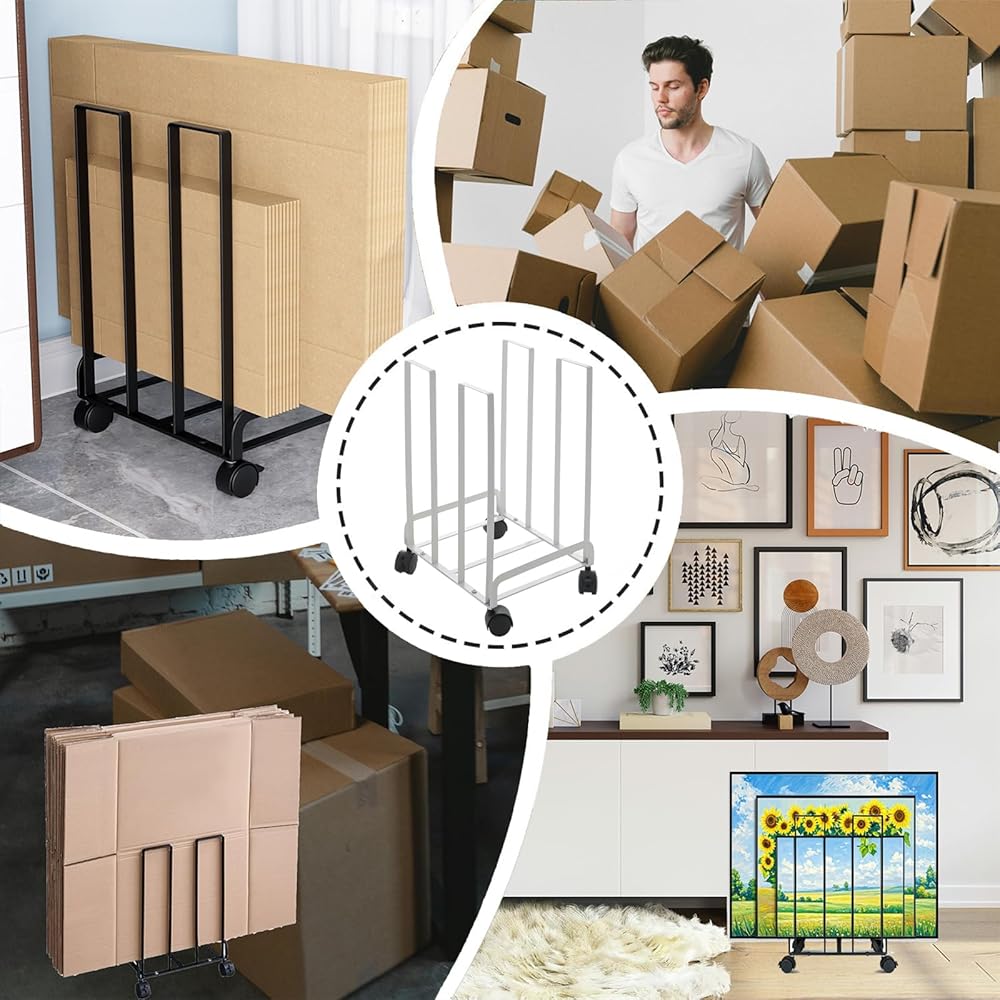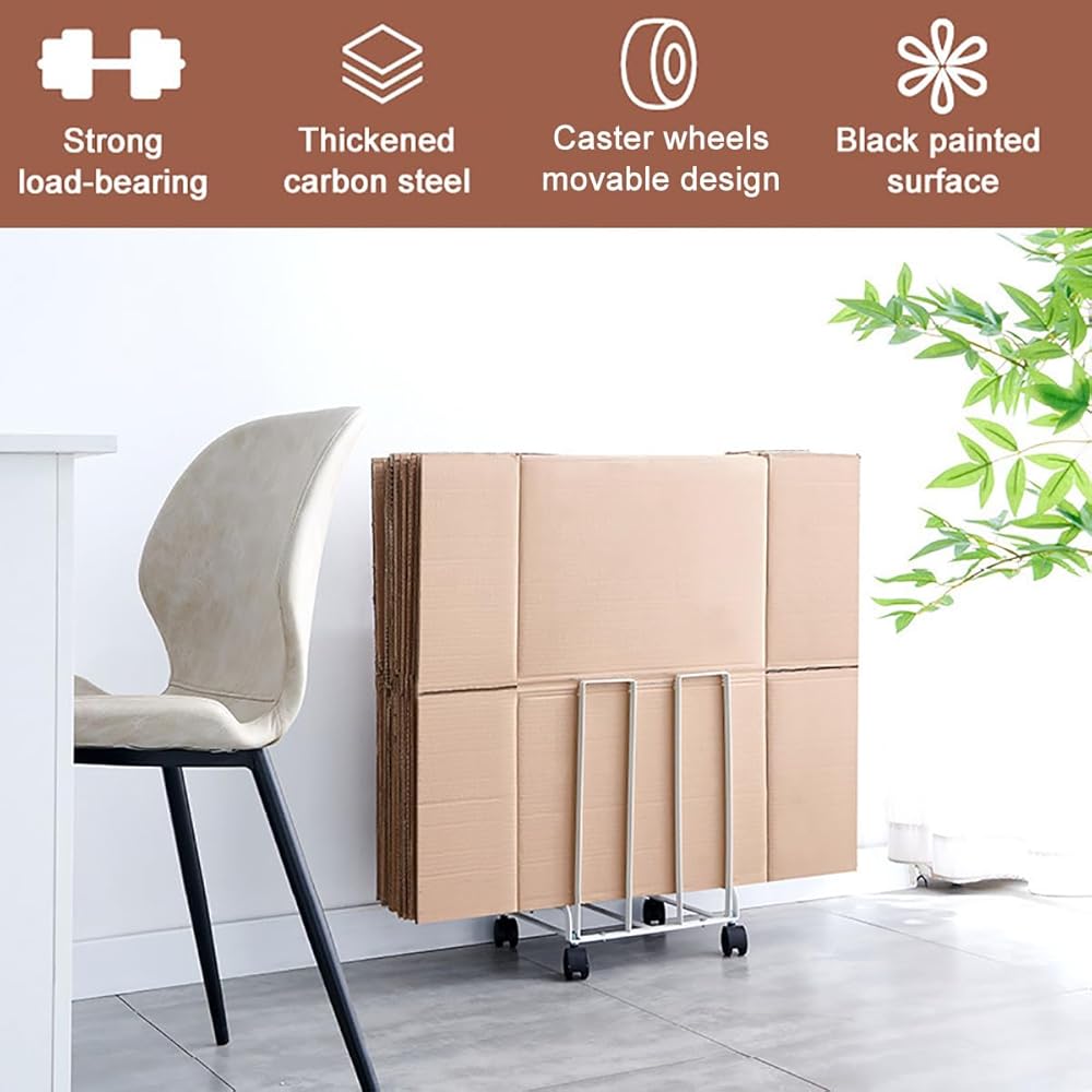 【سهلة الحركة】: مجهزة بـ 4 عجلات (عجلتان قابلتان للقفل)، يمكن نقل عربة تخزين الكرتون هذه بسهولة إلى المكان المطلوب، مما يجعل التنظيم أسهل وتوفير المساحة.