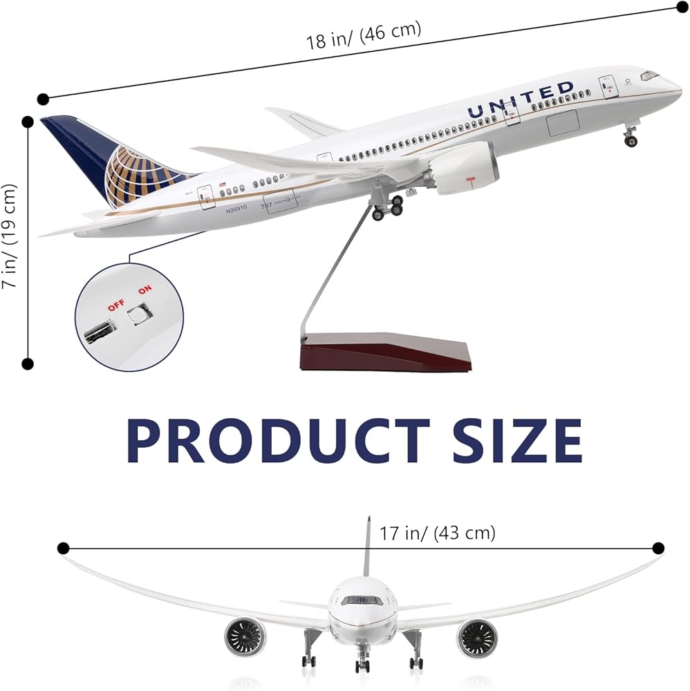 ✈نموذج الطائرة - نموذج بمقياس 1:130 American United 787، الطول (18 بوصة)، العرض (17 بوصة)، الارتفاع (7.4 بوصة). الحد من تكاثر النماذج المصغرة.