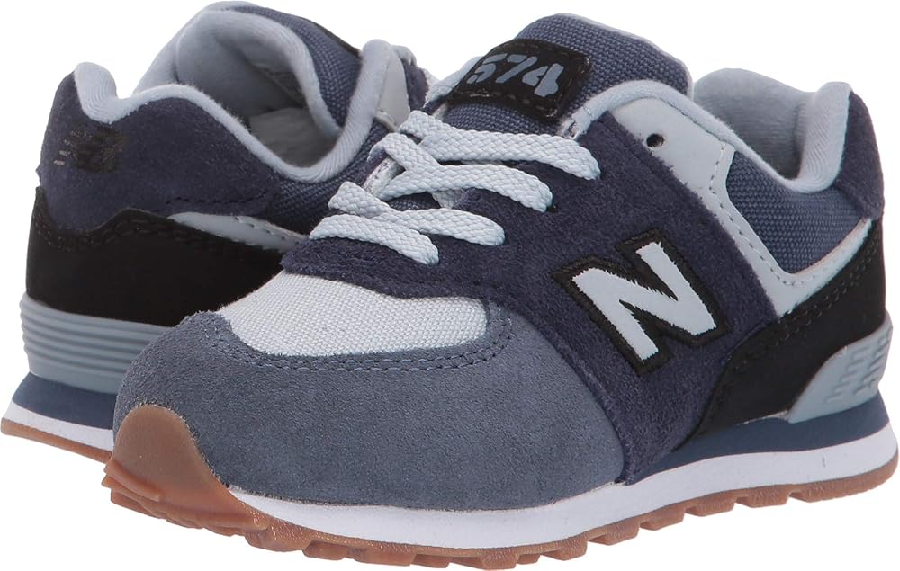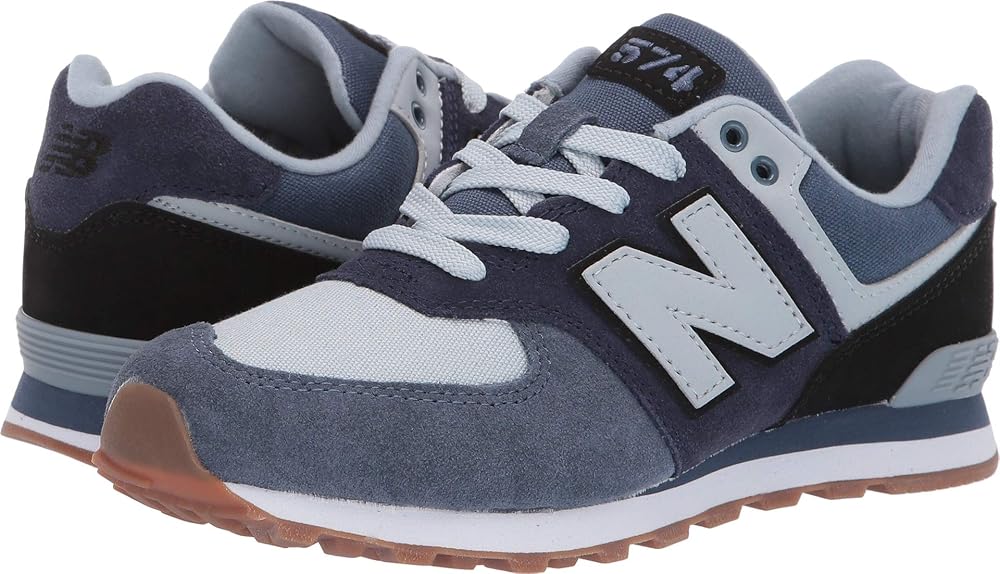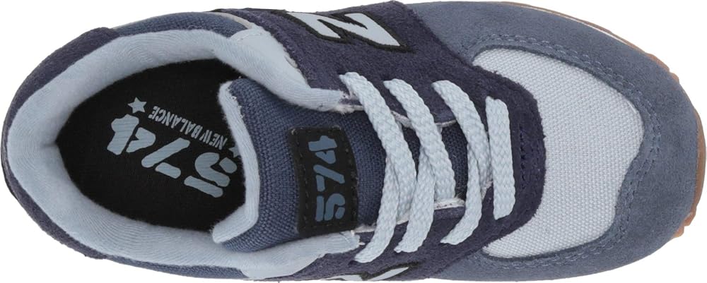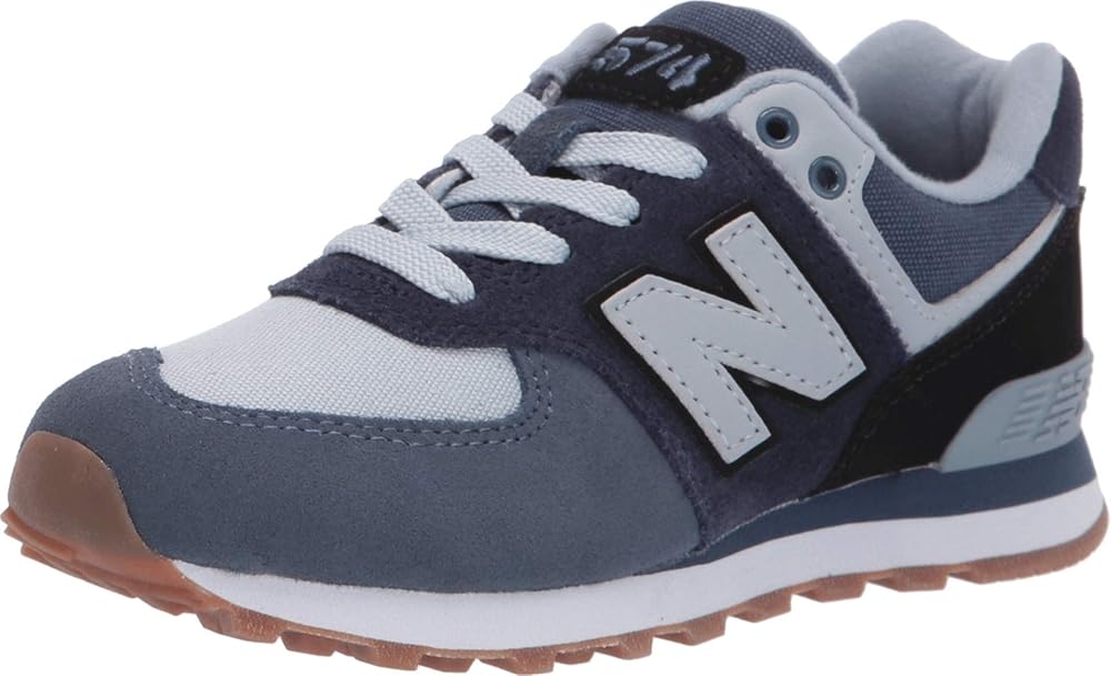 For a shoe that can handle your child's busy days, pick up the New Balance 574 kids' sneaker. The durable construction is ideal for active kids as it was designed to stand up to general wear-and-tear and daily play. The upper offers a lightweight feel for a more comfortable fit while the durable rubber outsole provides traction on indoor and outdoor surfaces including school hallways, the playground and everywhere in between. These kids' sneakers also include lightweight EVA foam cushioning in the midsole and heel to increase comfort. The lace-up closure lets little kids practice the challenge of tying their shoes, and helps boost confidence in more independent children. Inspired by New Balance heritage designs and finished with an adult-style sneaker silhouette, these kids' shoes add style and confidence to help kiddos take on their day. For a look the entire family can rock together, check out the men's and women's versions of these 574s.