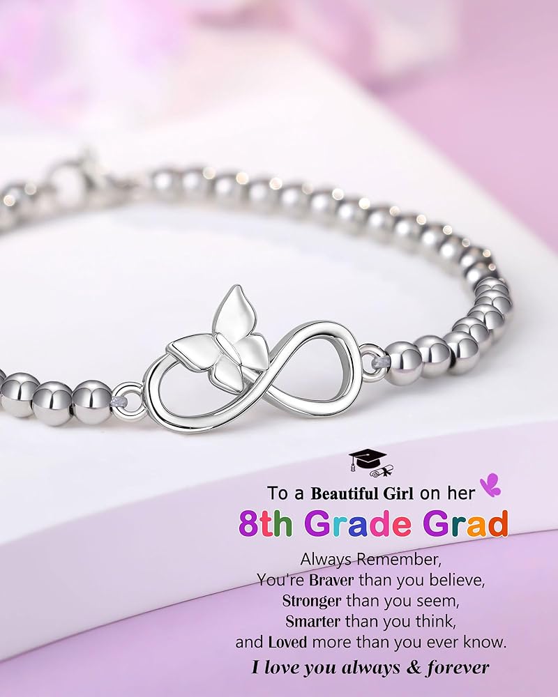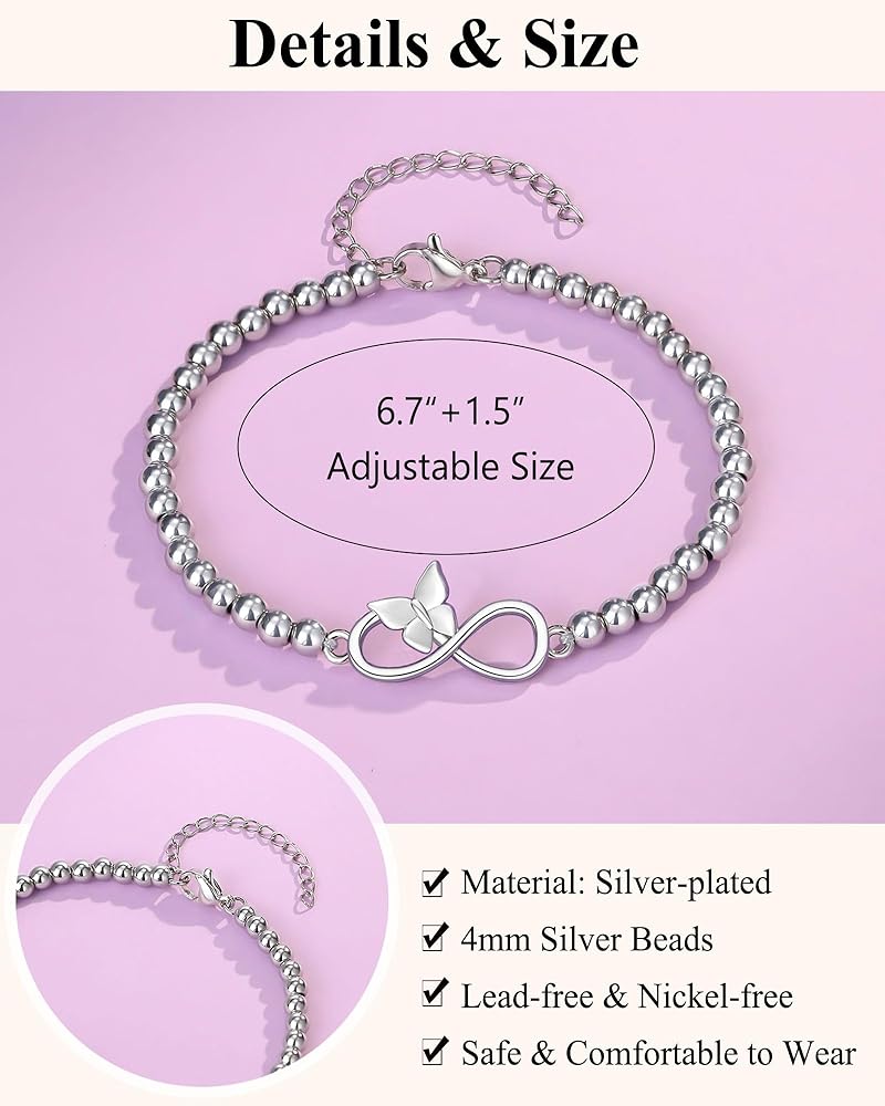【سوار فراشة للفتيات】-- جنبًا إلى جنب مع الفراشة الرائعة ورموز اللانهاية، يرمز هذا السوار إلى الحب والاحتمال غير المحدود. امنح هذا السوار لفتاتك، لتذكيرها بشجاعتها وقوتها وذكائها وحبها. يا لها من هدية تخرج ذات معنى!