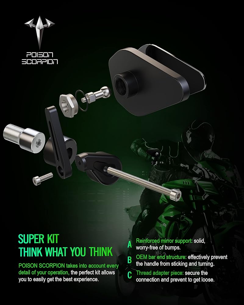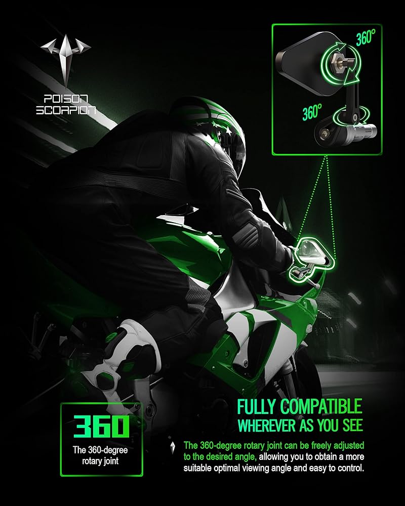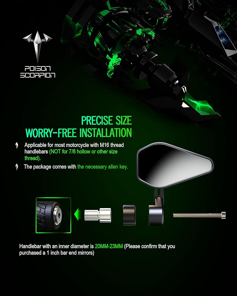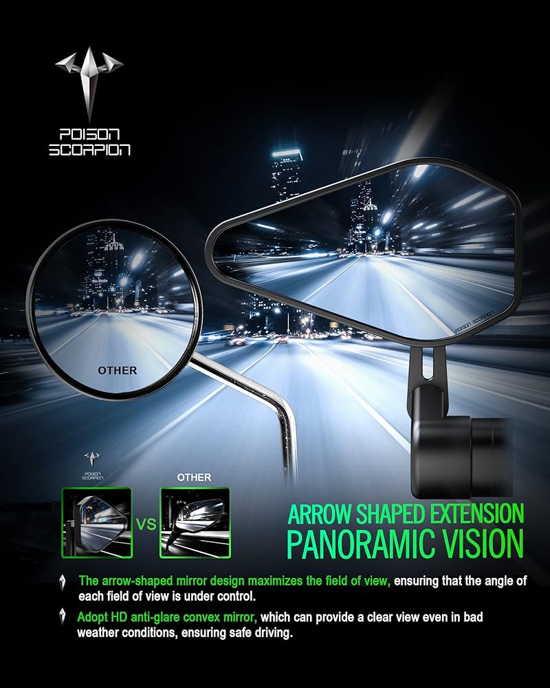 ※[سهلة التركيب]: تم تصميم مرايا الدراجة النارية هذه بمحول ملولب للتركيب المباشر دون أي تعديل. بالمقارنة مع المرايا الشريطية الشائعة، فإن التصميم الملولب يجعل التثبيت أكثر أمانًا وأمانًا، ويتجنب مشكلة ارتخاء المرآة أو سقوطها بسبب الاهتزاز أثناء القيادة