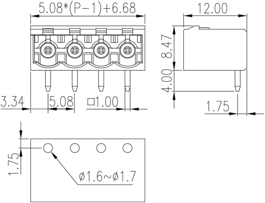 Specification: Type: single line; Pitch: 5.08mm; Rated value: 300V 12A.