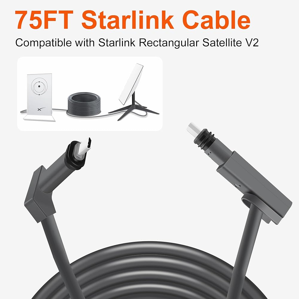 【About Starlink Replacement Cable】: Starlink gen 2 cable can easily replaces the starlink rectangular satellite V2 cable, connect it to your Starlink gen2 dish and router, plug and play. 【Starlink Replacement Cable Length】: We provides Starlink cable 75ft/23M, meet your versatile installed scenes or as a backup cord, no need to cut or modify your standard cable. 【IP68 Waterproof】: 5 layers of protection, Soarhigh Starlink replacement cable has excellent waterproof and the ability to cope with all kinds of weather and the environment, once installed for life. 【Stable Connectivity】: Soarhigh Star link cables for outdoor and indoor use made of high-quality 24AWG single-core copper, durable construction for stable network supply, 1000Mbps data transfer provides streaming without lag. 【Multi-purpose Usage Scenarios】: Home, RVs, yachts, picnics, and more, this Starlink cable is perfect for getting fast and easy internet access wherever you go.Note: If the connection is not successful once, you can plug and unplug it several times and it will be successful.