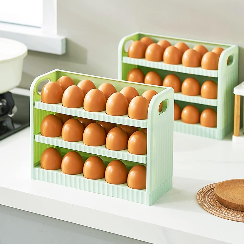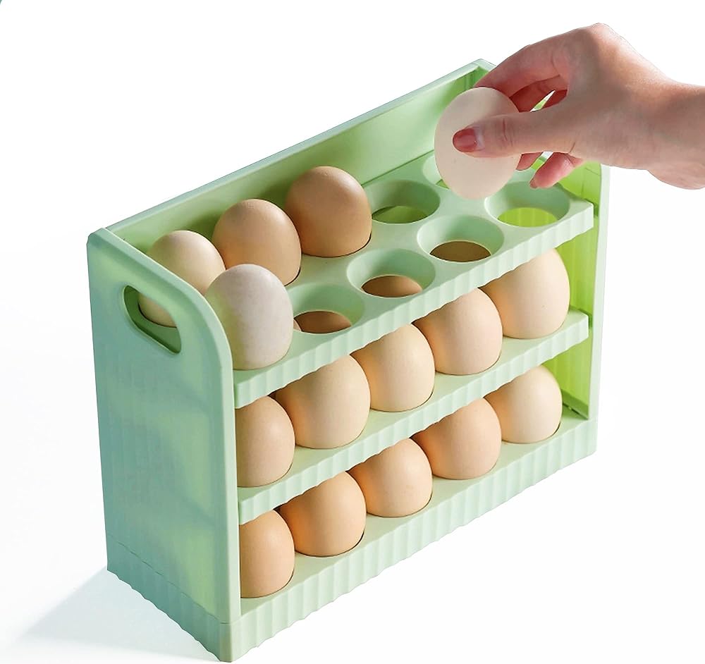 صينية بيض الثلاجة تحافظ على بيضك طازجًا مع حامل البيض القابل للتكديس هذا والذي يتسع لـ 30 بيضة للثلاجة. طريقة ممتازة لتخزين بيضك بشكل آمن ومريح. ستساعدك على زيادة مساحة رف الثلاجة في ثلاجتك.