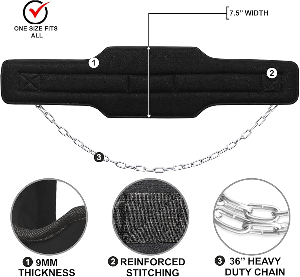 This versatile and safe dip belt is everything you need to make sure your training is correct, efficient, and safe, regardless of how much weight you plan to lift. Our lifting belt is made with heavy-duty materials and reinforced stitching that adds more resilience, durability, and protection. The belt comes with a heavy duty 36-inch long chain with a carabiner for increased safety and an extra-wide design that provides enhanced comfort and support for your back. Durable, sleek, and versatile, this dip belt is a must-have for your high-intensity workouts.