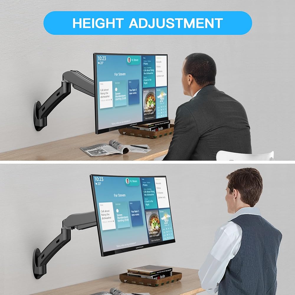 EASY TO INSTALL:Coming with all the screws you need, within 10mins, you will get a whole new device that is holded by a heavy duty and stable wall mount. It can be installed on wood stud/concrete/brick wall,but DON'T mount on drywall alone. If you any question about this single monitor arm, pls fell free to contact us. We will solve the problem for you ASAP.