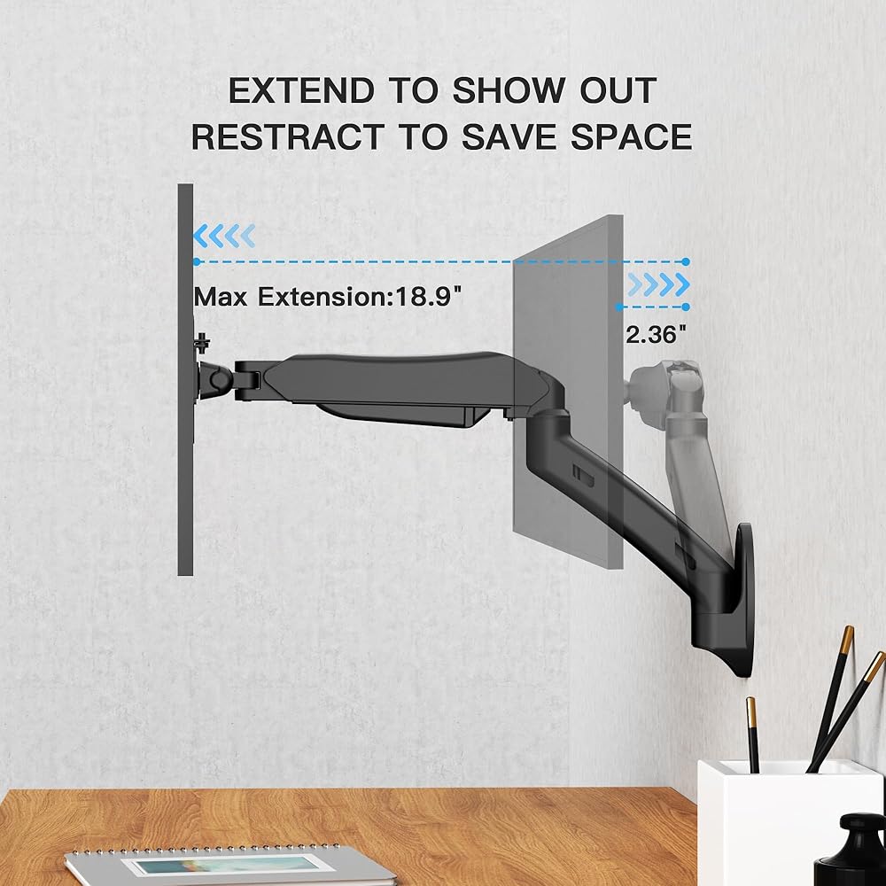 LOW PROFILE:When you need your device, you can extend the gas spring arm to make the device closer to you,18.9" away from the wall,or just push it to stay where you want,which is only 2.36" to the wall.