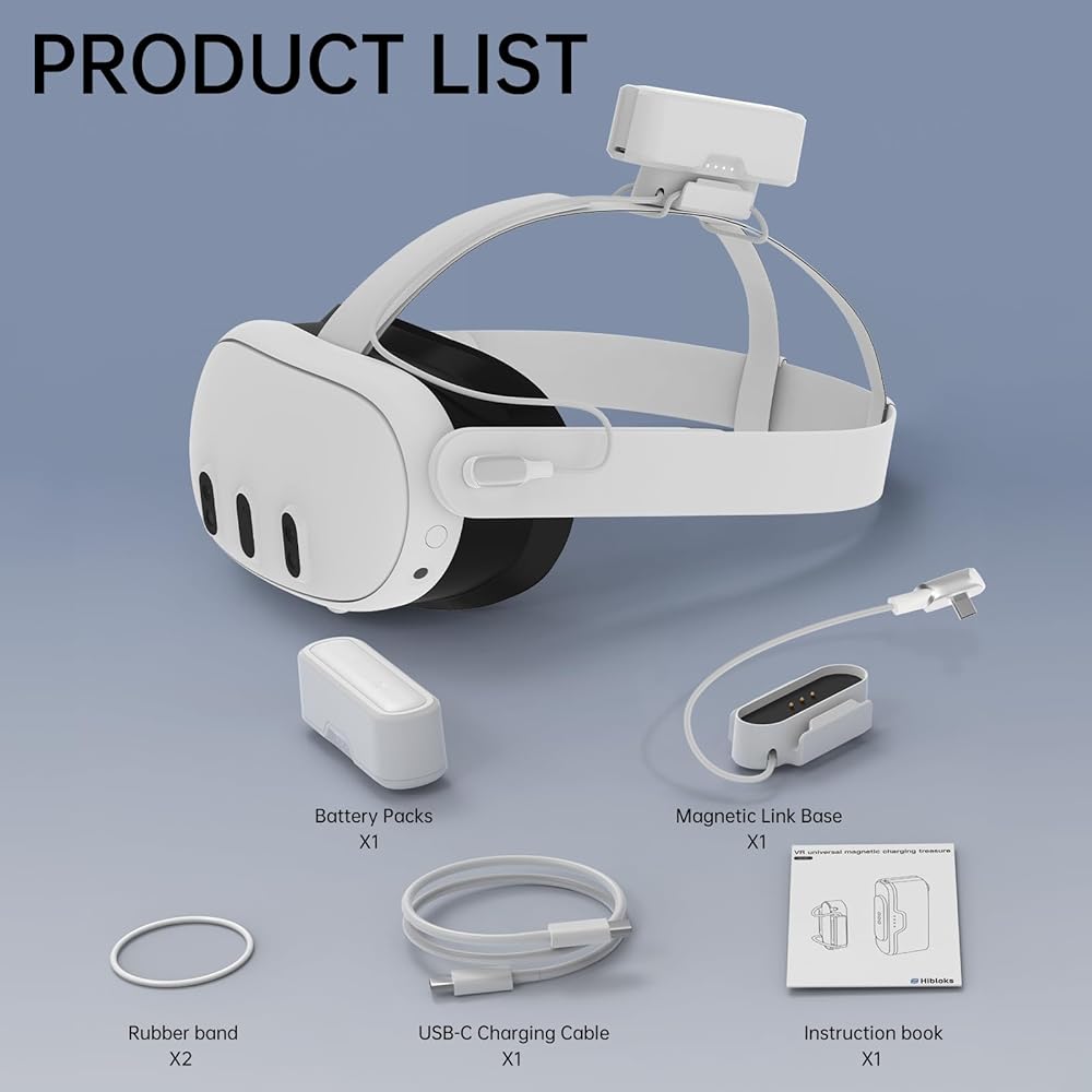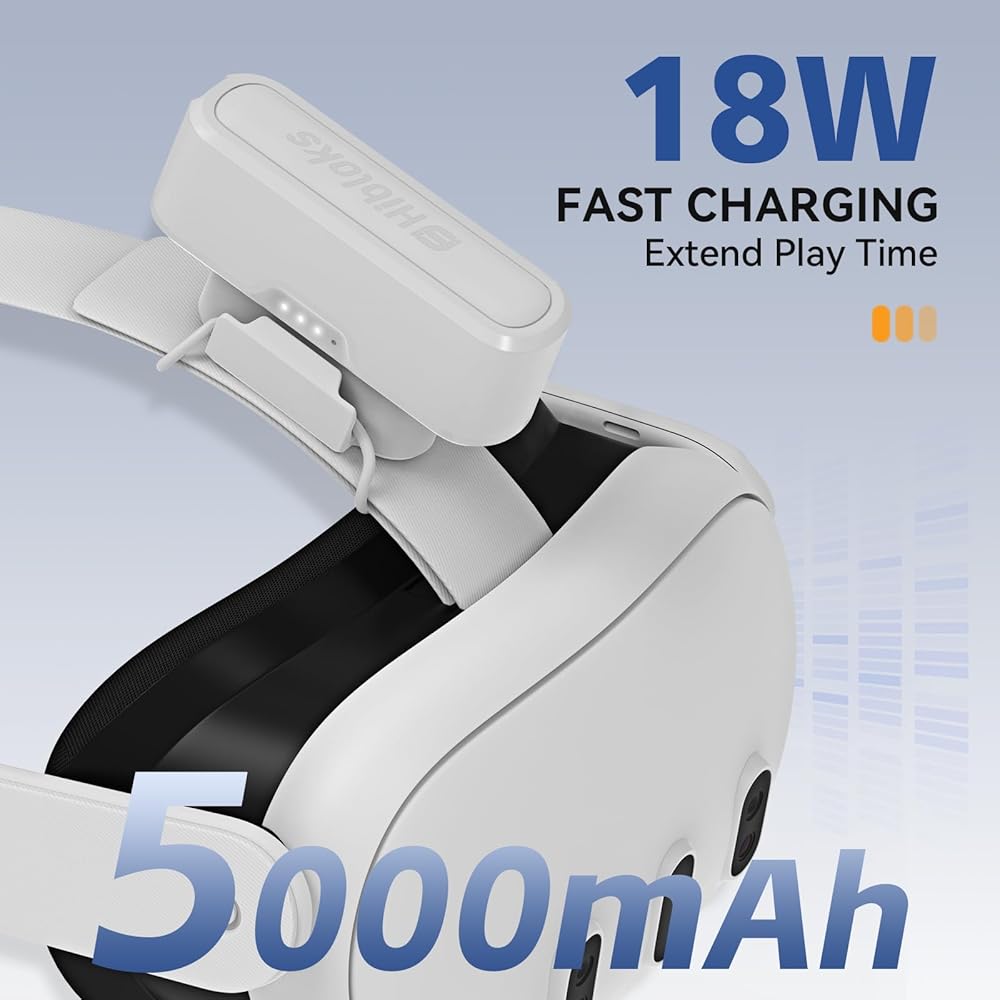 حزمة بطارية Hibloks للشحن السريع بقدرة 18 وات لجهاز Oculus Quest 3، مزود طاقة تمديد بقدرة 5000 مللي أمبير في الساعة مناسب لملحقات Meta Quest 2/3، يمنح جهاز الواقع الافتراضي الخاص بك 2-3 ساعات إضافية من وقت التشغيل