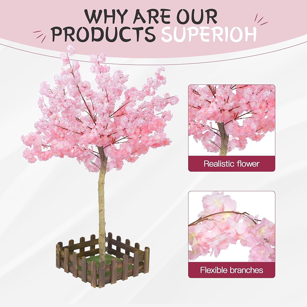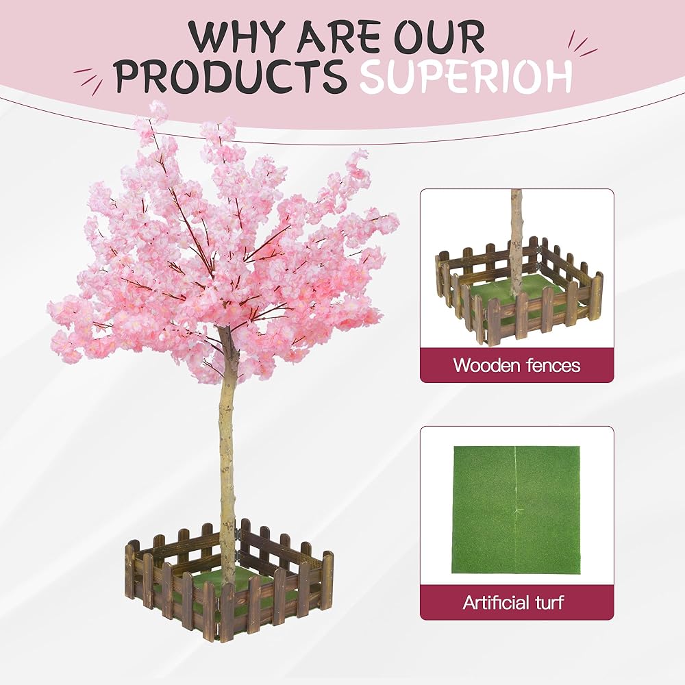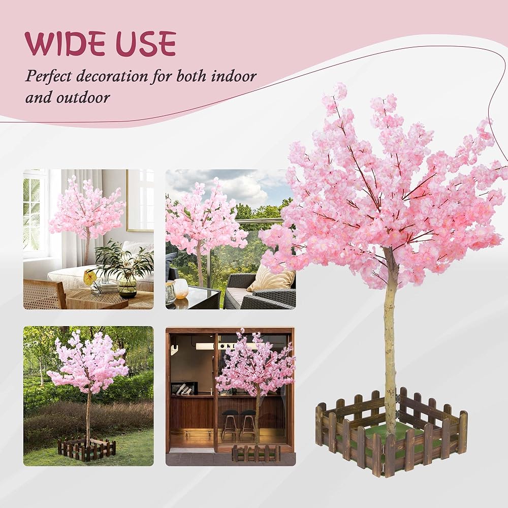🌺قيمة رائعة - تحتوي شجرة الكرز الوردية هذه على شجرة زهر الكرز كاملة بطول 5 أقدام، ودائرة واحدة من السياج الخشبي، والحديقة. تتيح لك الزهور الوردية الرقيقة والفروع القابلة للتعديل إنشاء الشكل والحجم المثالي لمساحتك الخاصة.