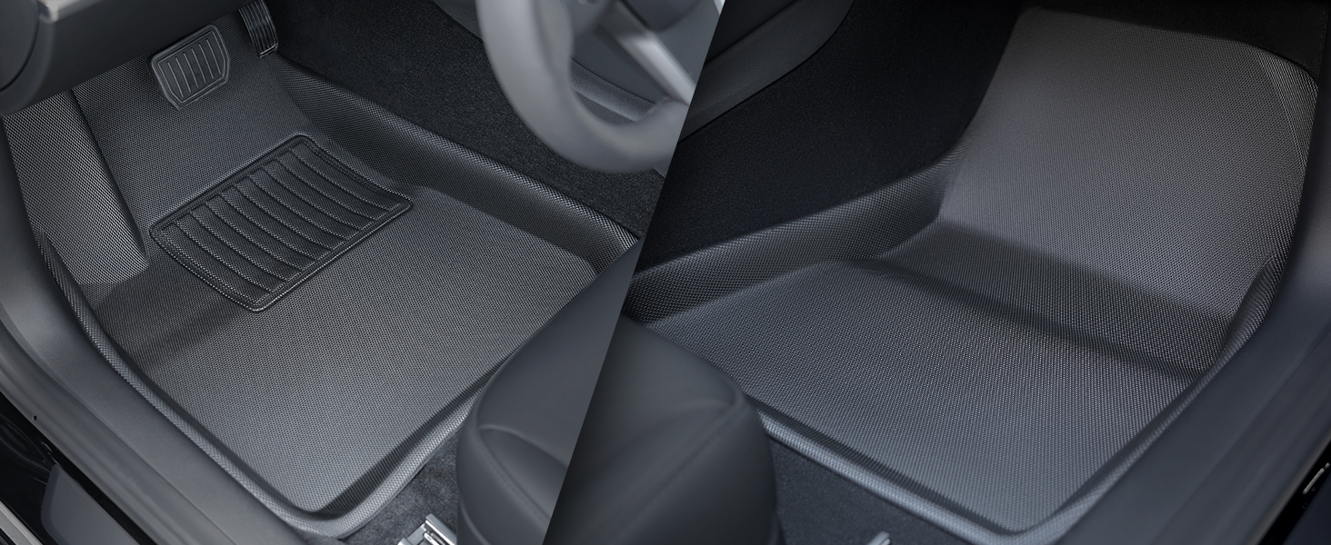 مادة بيئية متينة عالية الجودة: سجادات الأرضية للطراز 3 مصنوعة من مطاط عالي الجودة عديم الرائحة (TPR+XPE) للاستخدام لفترة طويلة، مريحة جدًا للاستخدام اليومي. تم تصميم ثلاث طبقات والطبقة الأولى (بدون شعار مطبوع) مصنوعة من مطاط لدن بالحرارة من نسيج ألياف الكربون لتجعل سيارتك متميزة.