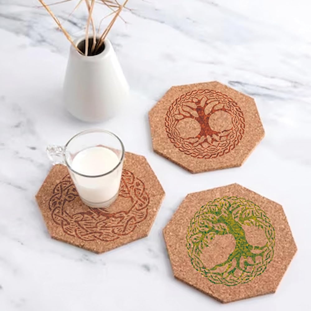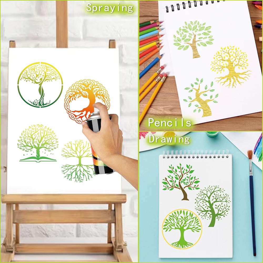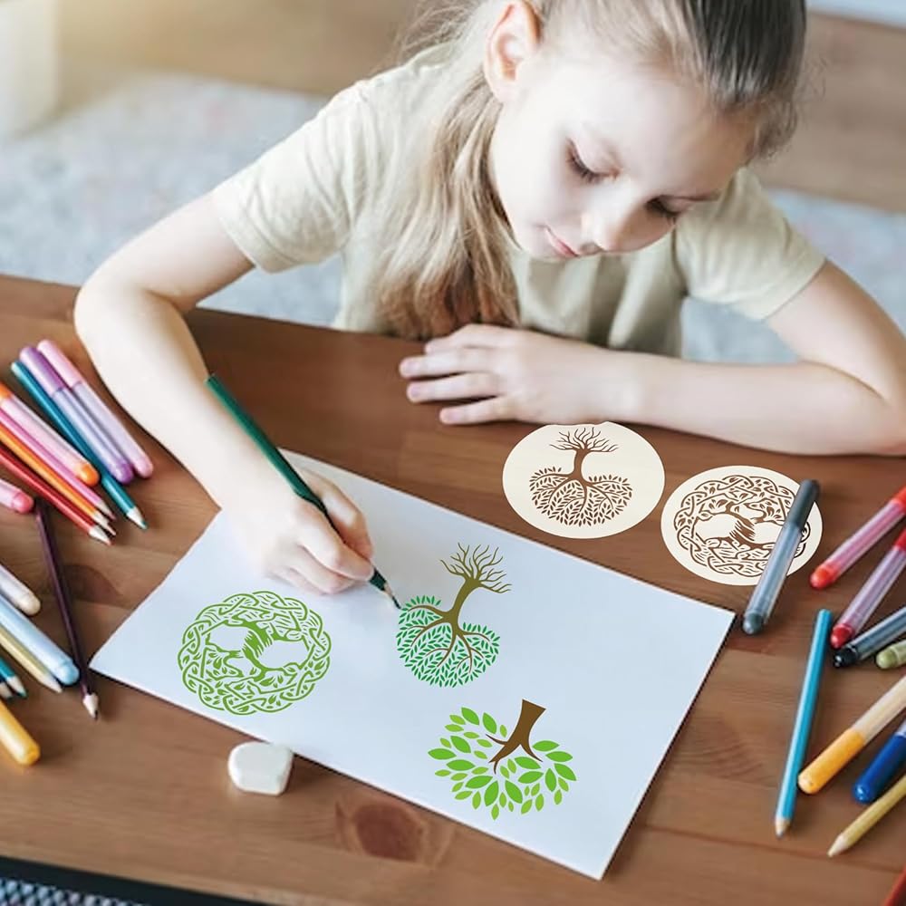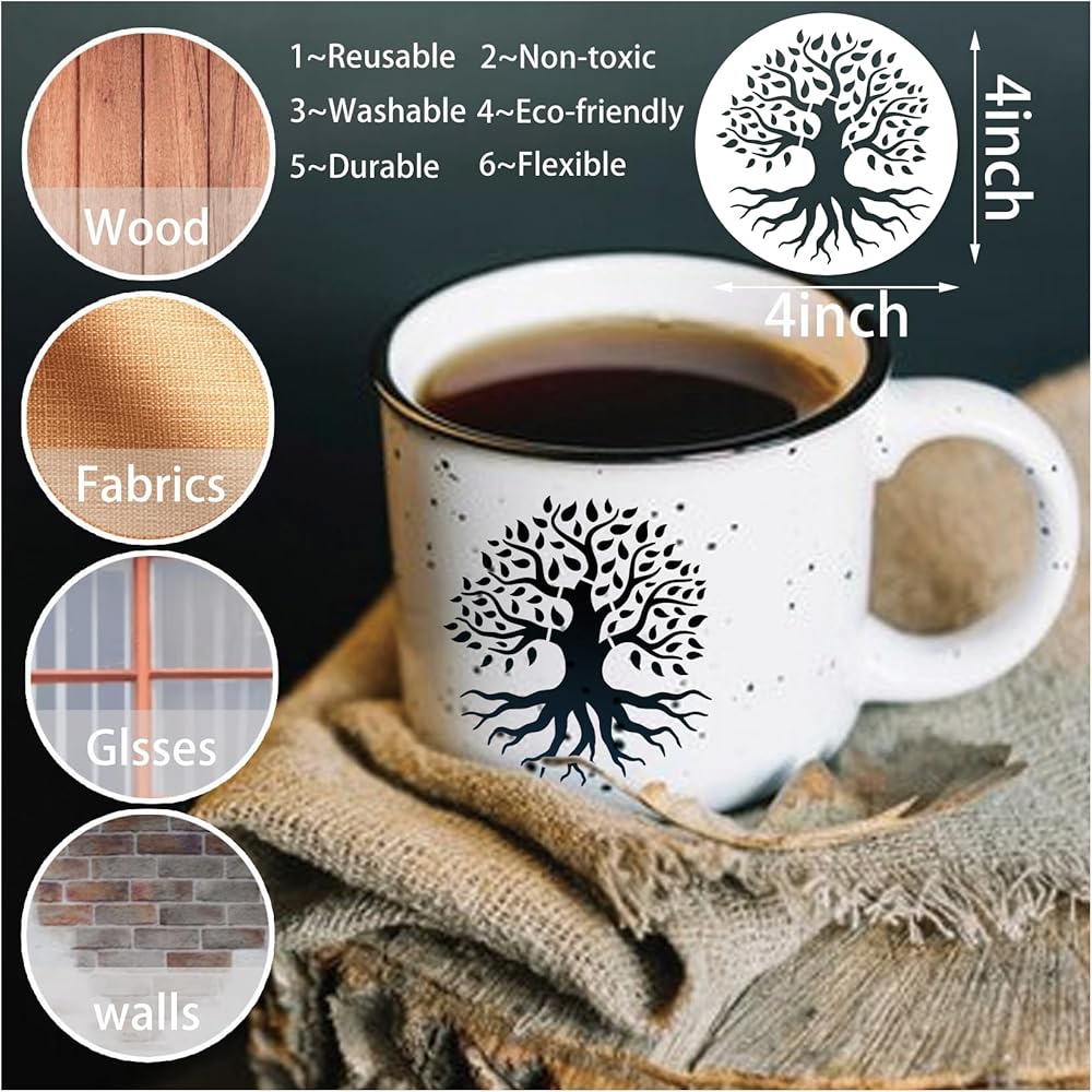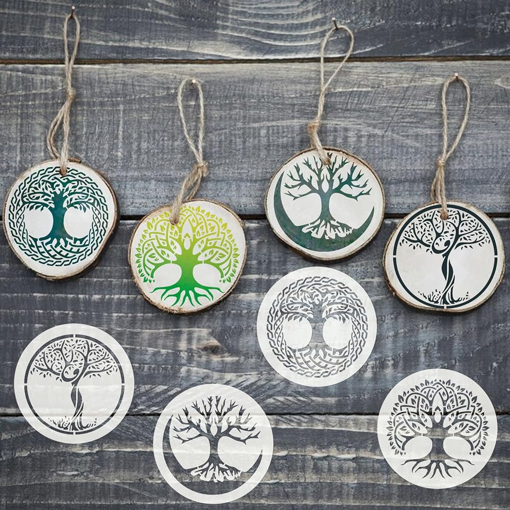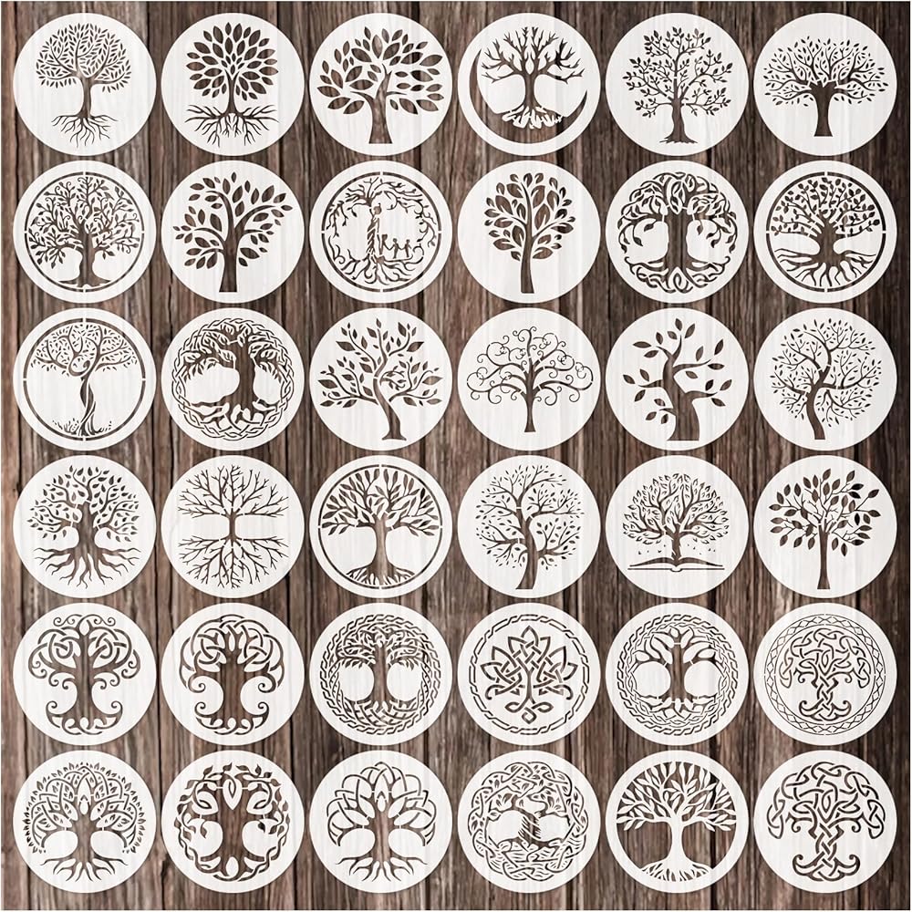 36 قطعة من استنسل شجرة الحياة، استنسلات شجرة مستديرة قابلة لإعادة الاستخدام مقاس 10.16 سم للرسم على الخشب والبلاستيك ورسم شجرة طبيعية لأعمال صناعة الأكواب القماشية (شجرة)