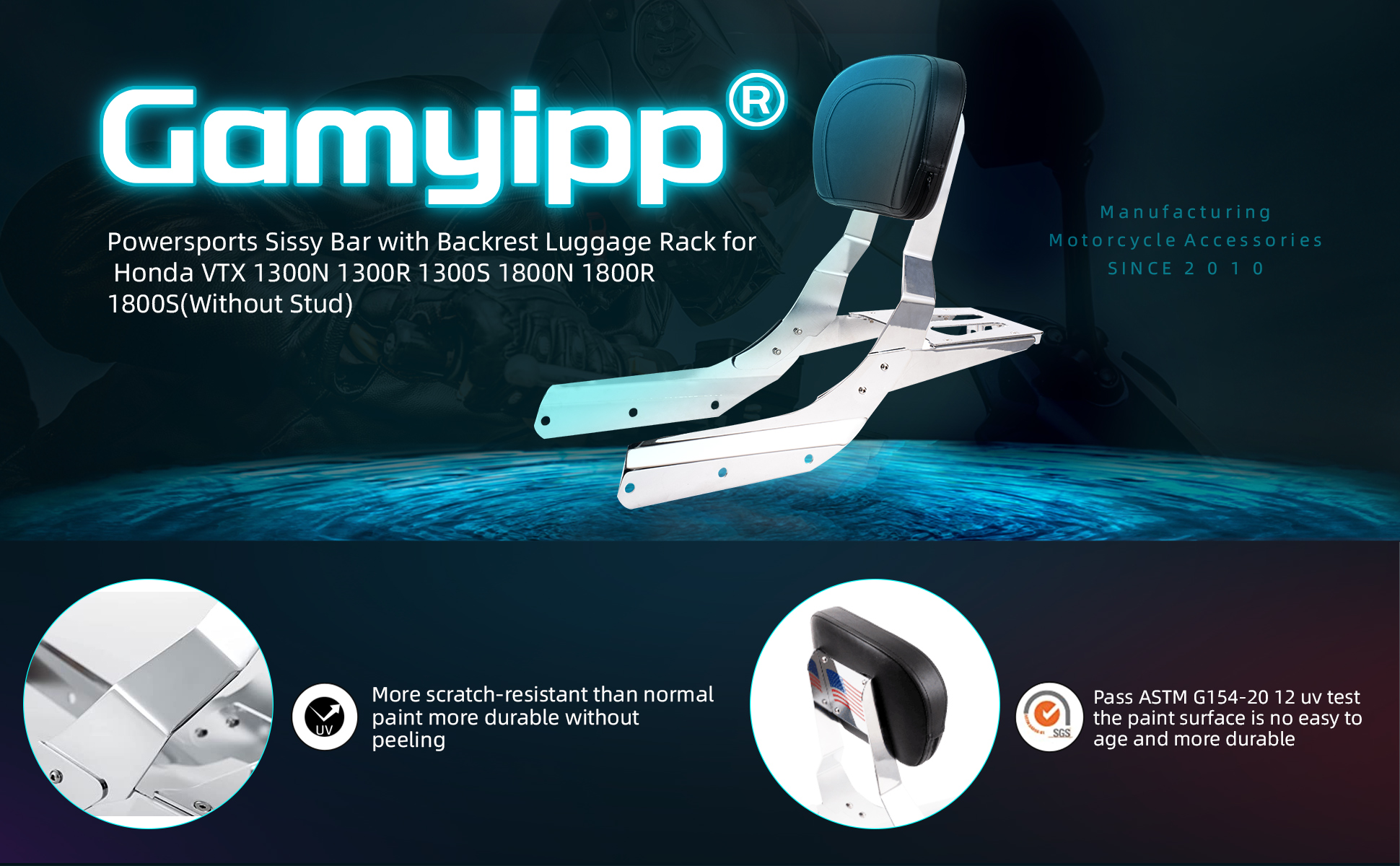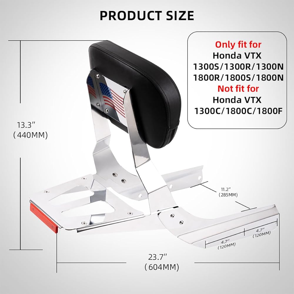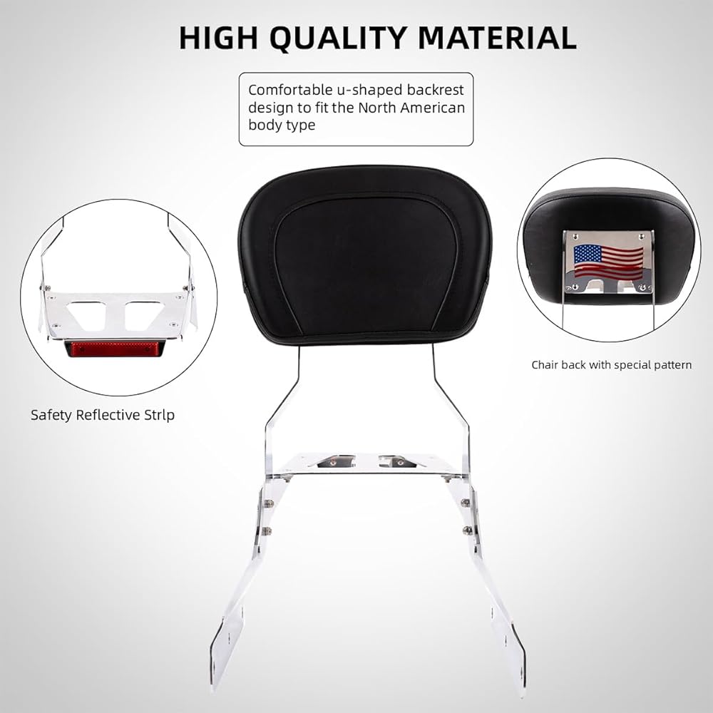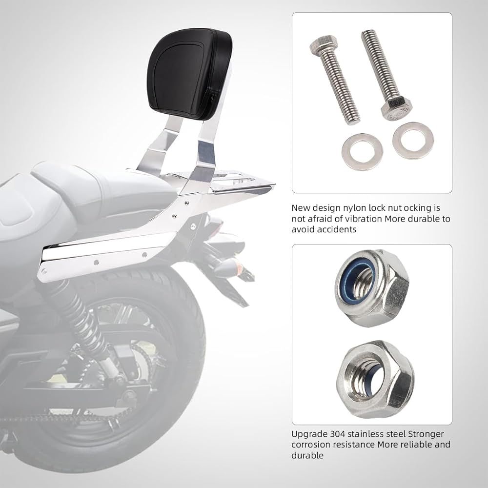 ★الميزات - يوفر مسند الظهر دعمًا رائعًا للركاب الخلفيين ويحسن راحة الركوب أثناء الرحلات الطويلة. تتيح لك الأمتعة المصنوعة من الكروم والمزودة بشرائط عاكسة القيادة بأمان في الظلام. مادة شريط سيسي من الفولاذ، وجميع البراغي من الفولاذ المقاوم للصدأ 304.