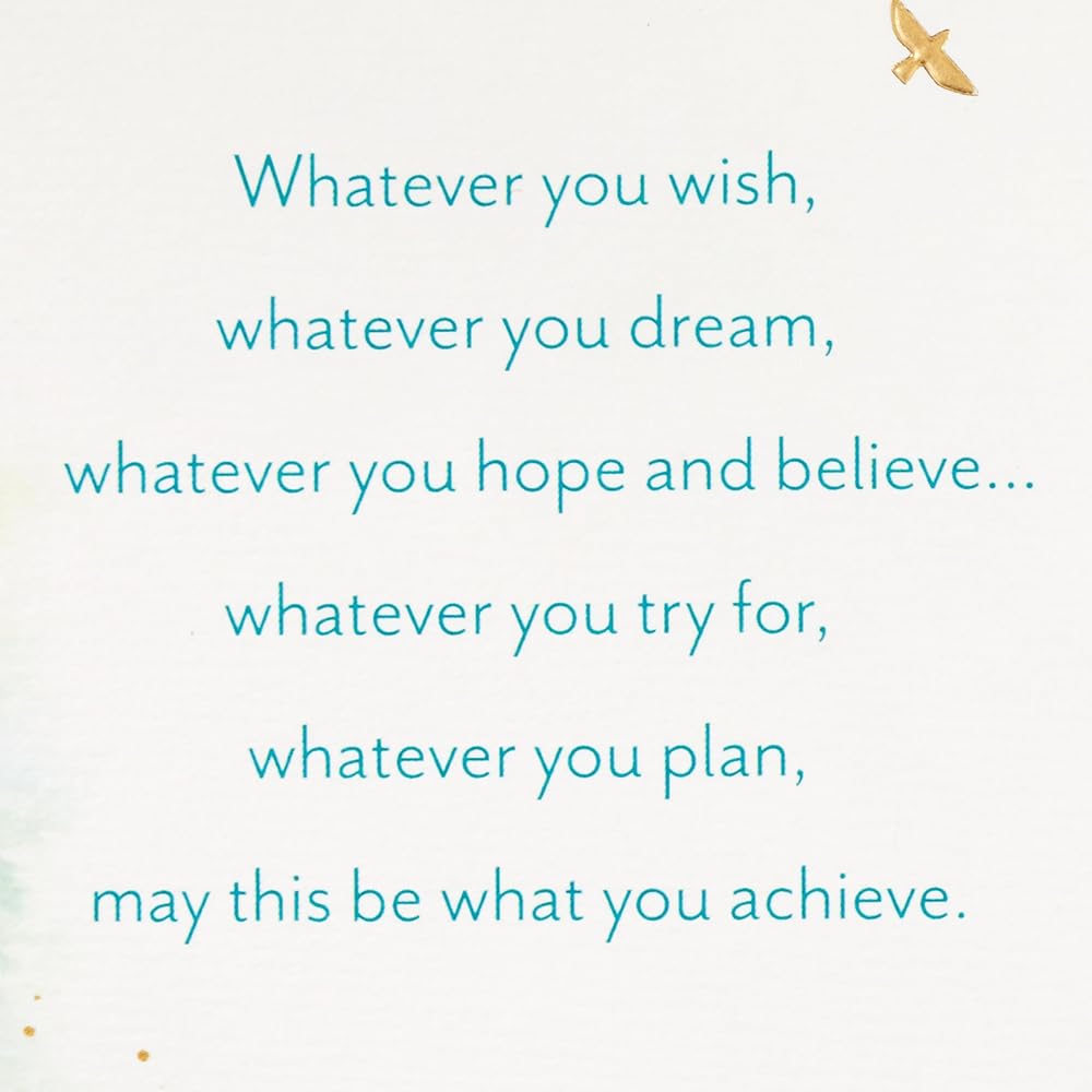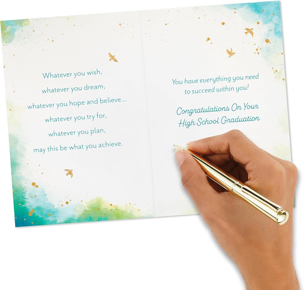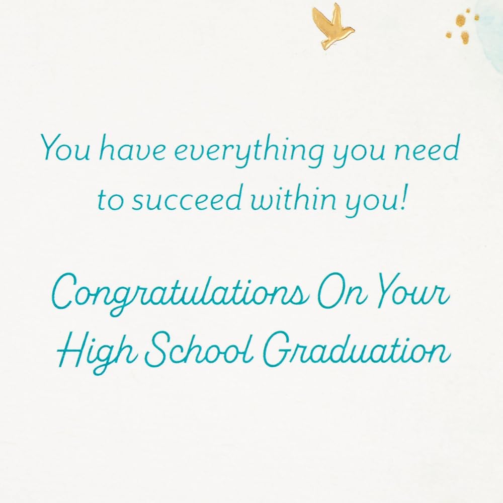 Inside: "Whatever you wish, whatever you dream, whatever you hope and believe, whatever you try for, whatever you plan, may this be what you achieve. You have everything you need to succeed within you! Congratulations On Your High School Graduation"