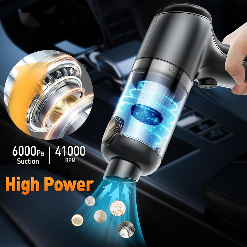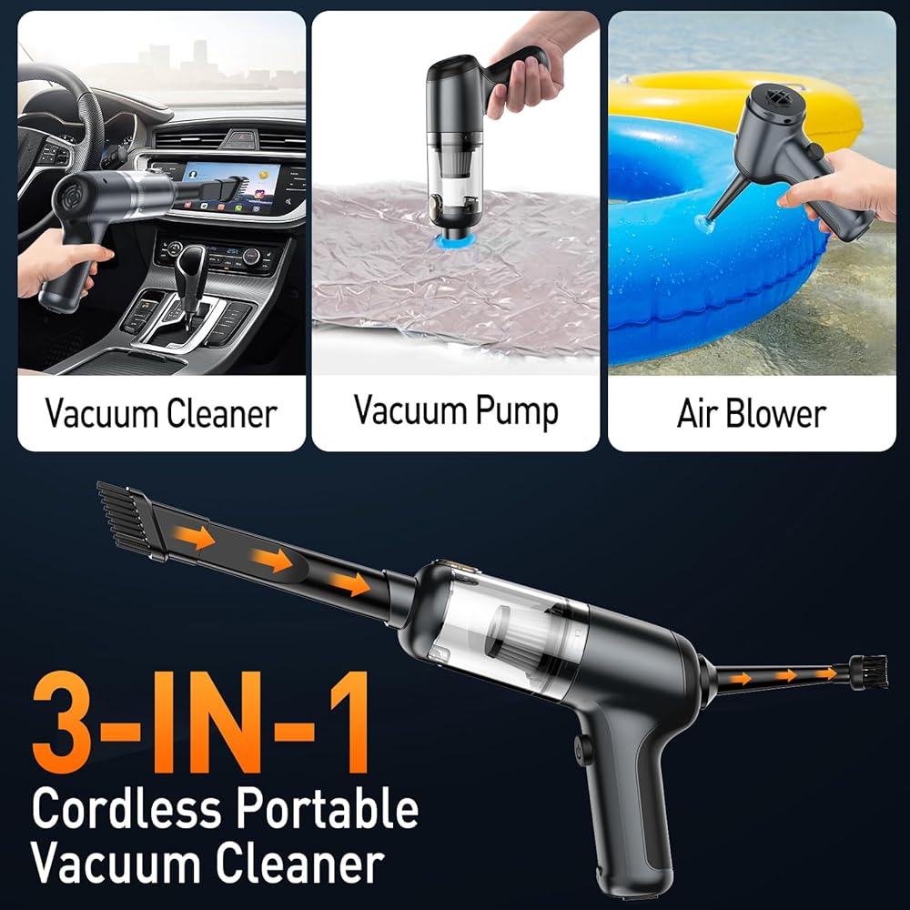 لاسلكية وقابلة لإعادة الشحن عبر USB: تعتمد هذه المكنسة الكهربائية المحمولة على بطارية ليثيوم أيون 4000 مللي أمبير في الساعة والتي يمكن أن تجلب المزيد من قوة الشفط، وتستخدم محول 5 فولت/2 أمبير يمكن شحنه بالكامل بسرعة في غضون 2.5-3 ساعات. يسمح لك التصميم اللاسلكي بحمل المكنسة الكهربائية اللاسلكية بسهولة. من المريح إخراجها، سهلة الاستخدام هذه المكنسة اللاسلكية المحمولة لتنظيف الغبار والجزيئات الصغيرة الأخرى في السيارة وفي المنزل والمكتب.