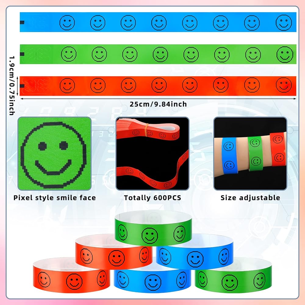 600 قطعة من الأساور الورقية للوجه المبتسم للمناسبات، أساور معصم ورقية بنمط الوجه المبتسم للرجال والنساء، أحمر، أخضر، أزرق