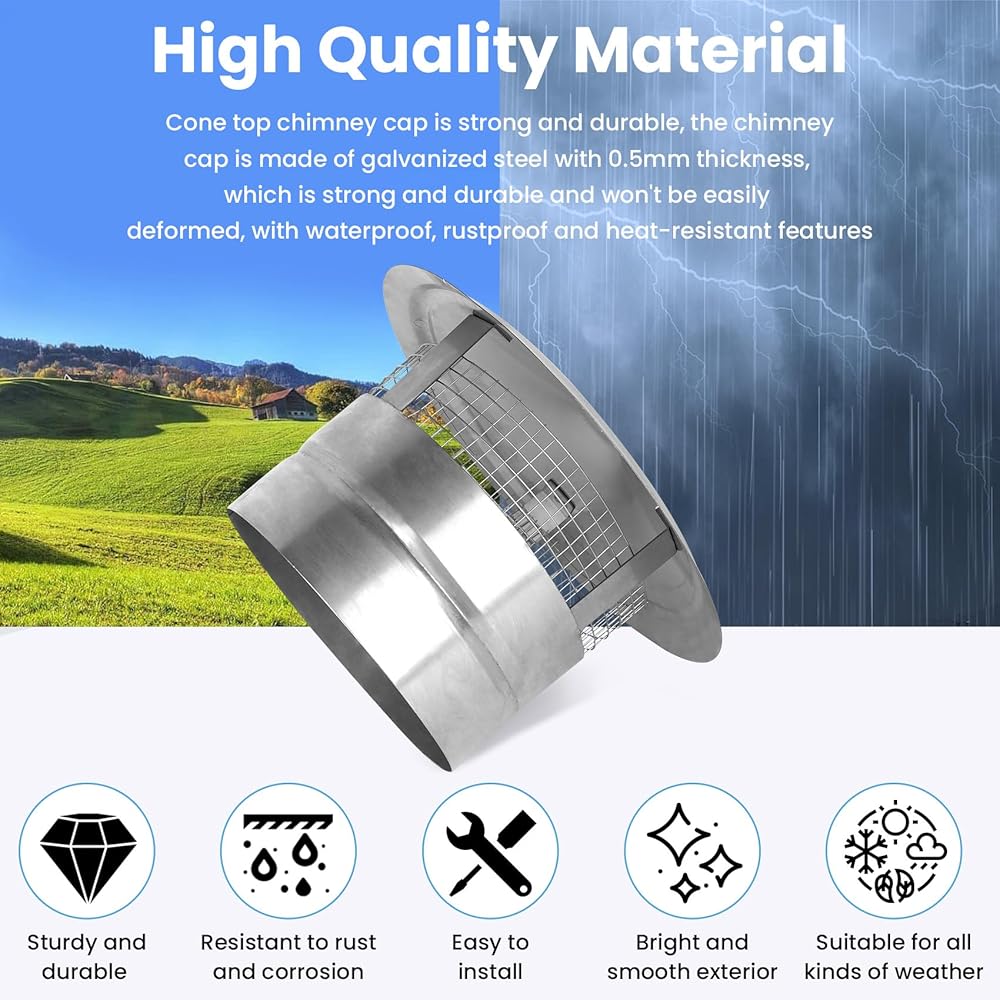 【المادة】: غطاء المدخنة الدائري مصنوع من الستيل المجلفن، والذي لن يتشوه بسبب الهجمات الحرارية اليومية وسيتحمل المطر والصدأ بسبب الاستخدام الخارجي الطويل.