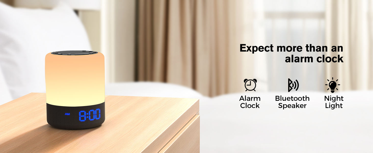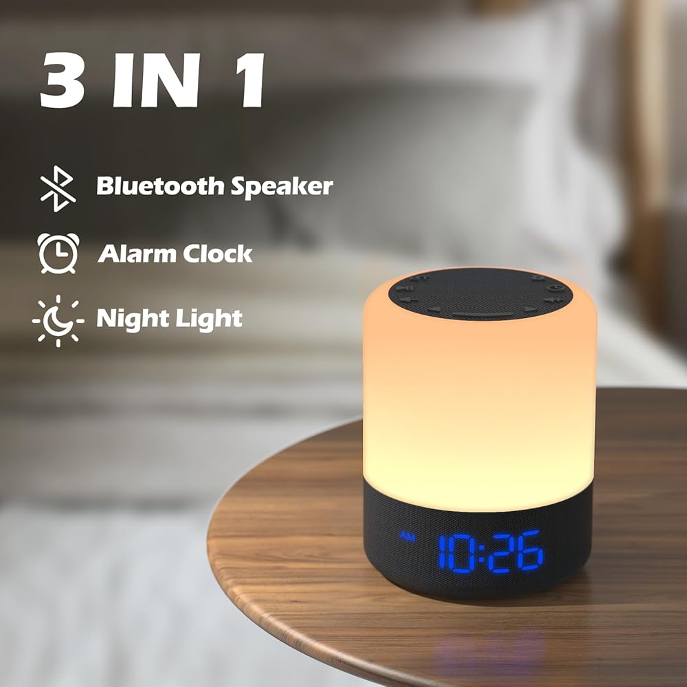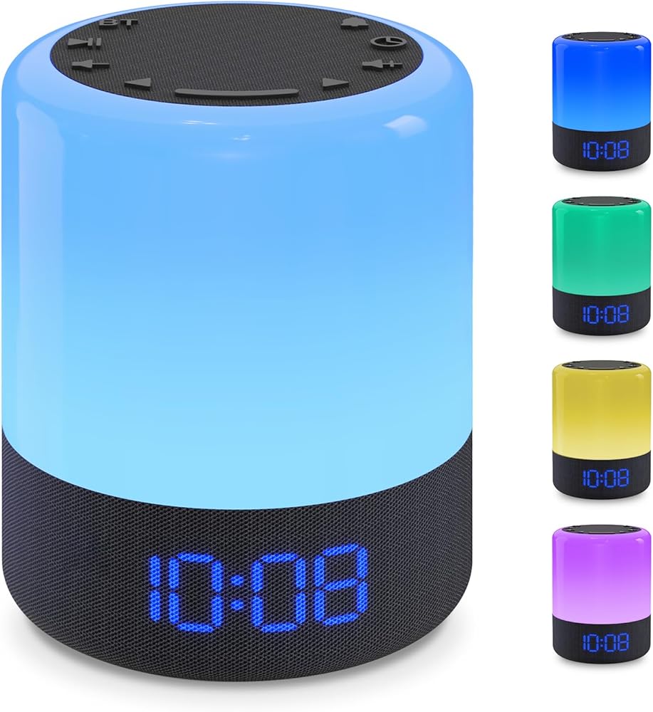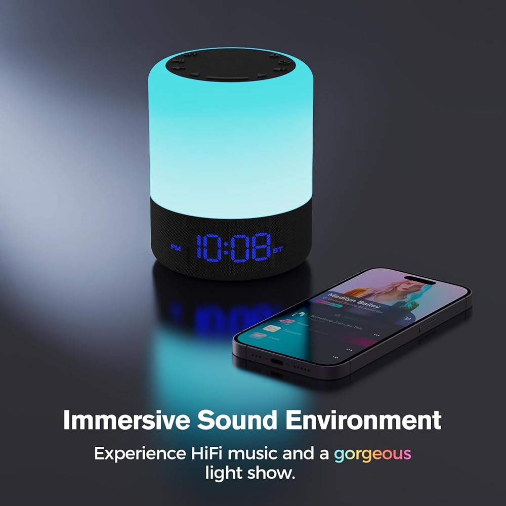 مكبر صوت بلوتوث بإضاءة ليلية من HOUSBAY، ساعة منبه لغرفة النوم، مصباح طاولة بجانب السرير، 12 ضوء ملون، ساعة قابلة للتعتيم، مكبر صوت لاسلكي عالي الدقة، منبه لطيف