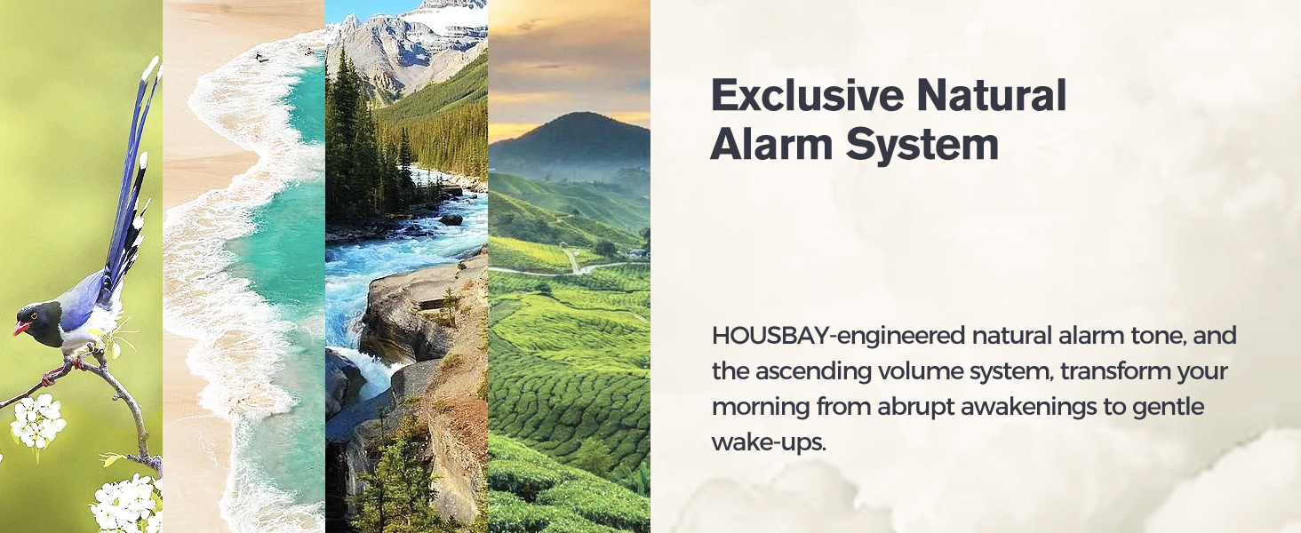 • 𝐀𝐥𝐚𝐫𝐦 𝐂𝐥𝐨𝐜𝐤: استيقظ بلطف مع 5 أصوات منبه مستوحاة من الطبيعة، بما في ذلك زقزقة الطيور وأمواج المحيط. عرض مفتاح التعتيم لسهولة القراءة أو إنشاء غرفة مظلمة ليلاً ونهارًا، مثالي للأفراد الحساسين للضوء.