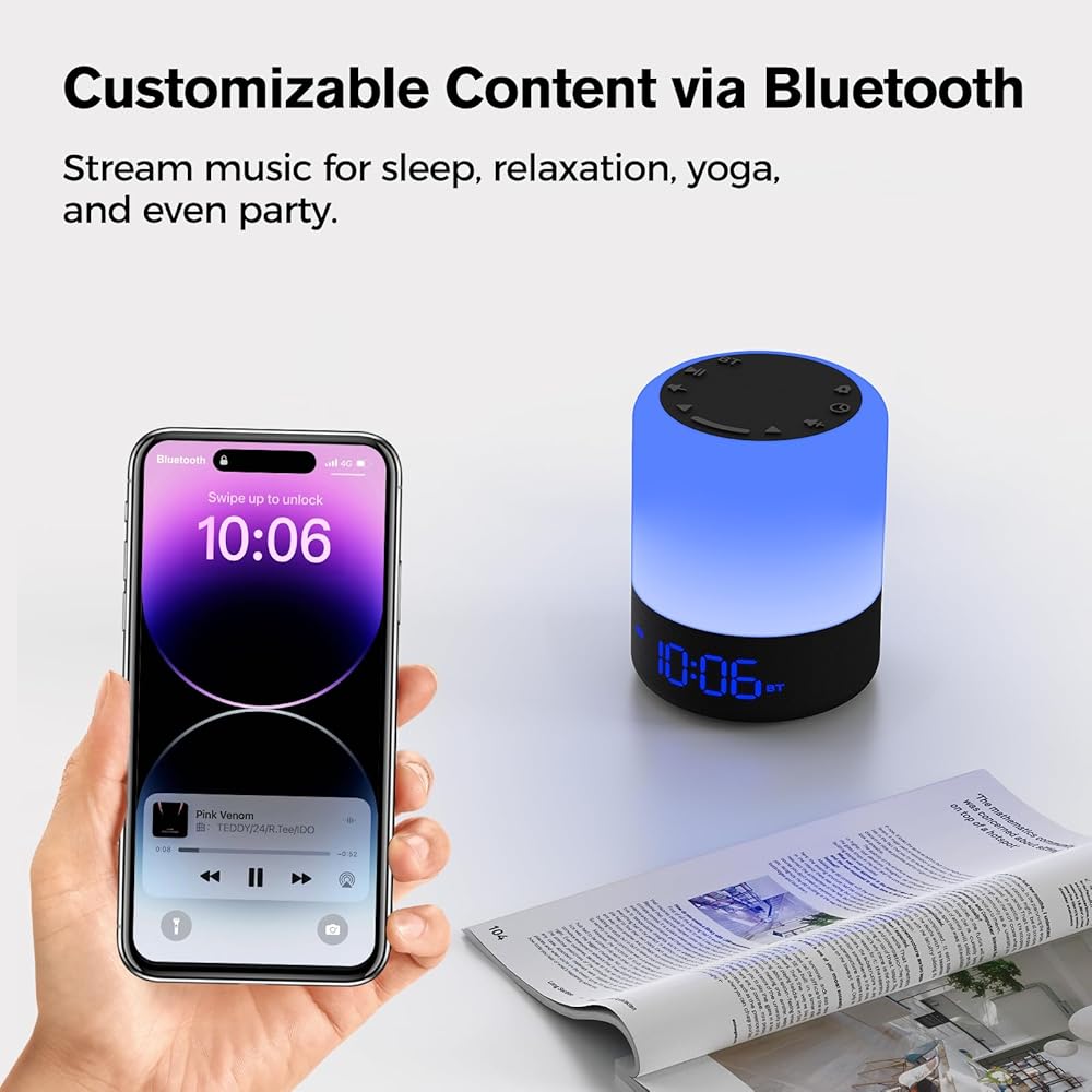 • 𝐁𝐥𝐮𝐞𝐭𝐨𝐨𝐭𝐡 𝐒𝐩𝐞𝐚𝐤𝐞𝐫: يتيح Bluetooth 5.0 المتقدم اتصالاً فوريًا وسلسًا يصل إلى 66 قدمًا. يمكنك الوصول بسهولة إلى الأغاني المفضلة وأصوات النوم والكتب الصوتية وموسيقى اليوغا وأصوات التأمل والمزيد.