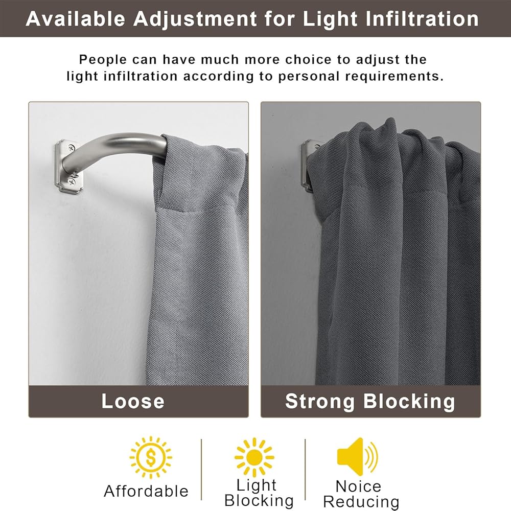 قضبان ستائر تعتيم الغرفة: قضبان ستائر منحنية لتعتيم الغرفة، مصنوعة من قضبان معدنية أكثر سمكًا وأثقل بسمك 0.6 مم، مما يسمح بدعم ستائر أكثر سمكًا وأثقل لتعتيم الغرفة أو ستائر التعتيم، وتحجب مصادر الضوء الخارجية بشكل فعال، وتساعد على خلق غرفة داكنة وأكثر خصوصية. بيئة. وهو مفيد بشكل خاص لغرف النوم أو المسارح المنزلية أو أي مساحة حيث يكون التحكم في الإضاءة مرغوبًا فيه، مثل الأشخاص ذوي أنماط النوم الحساسة أو العاملين في المناوبات الليلية.