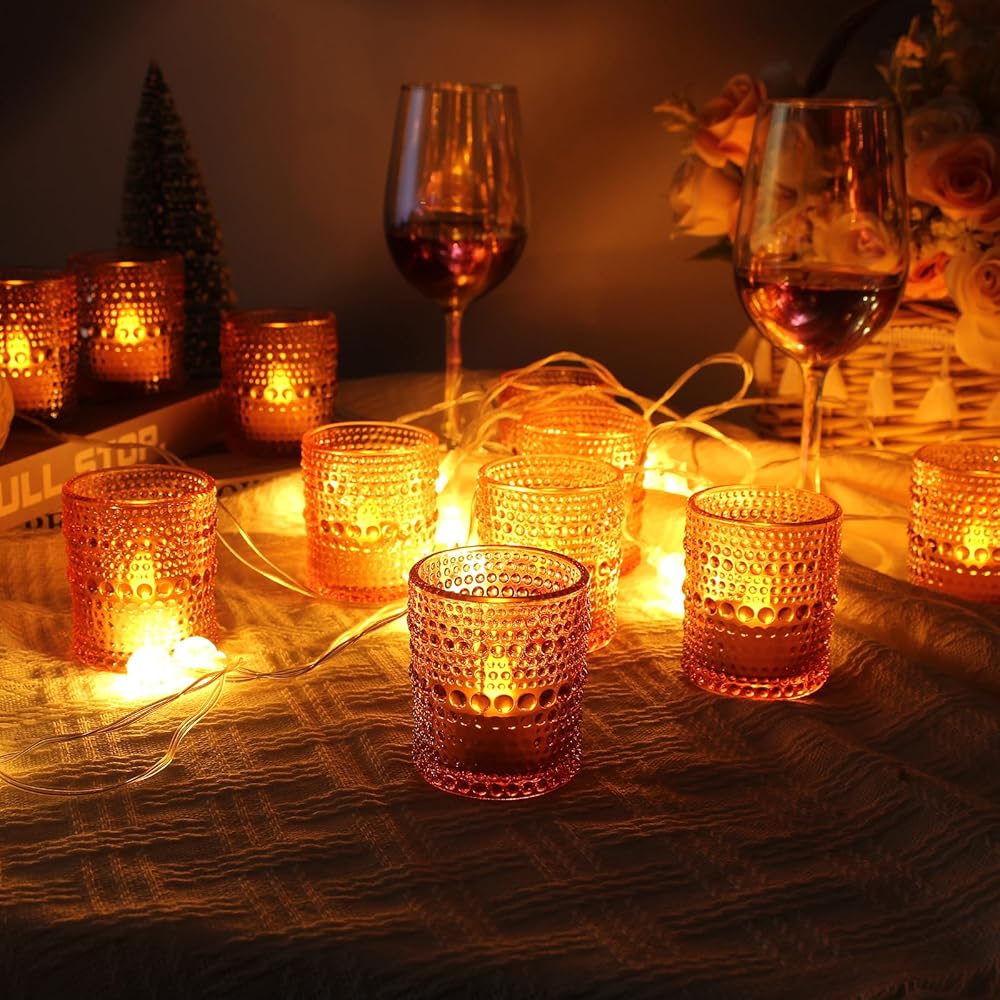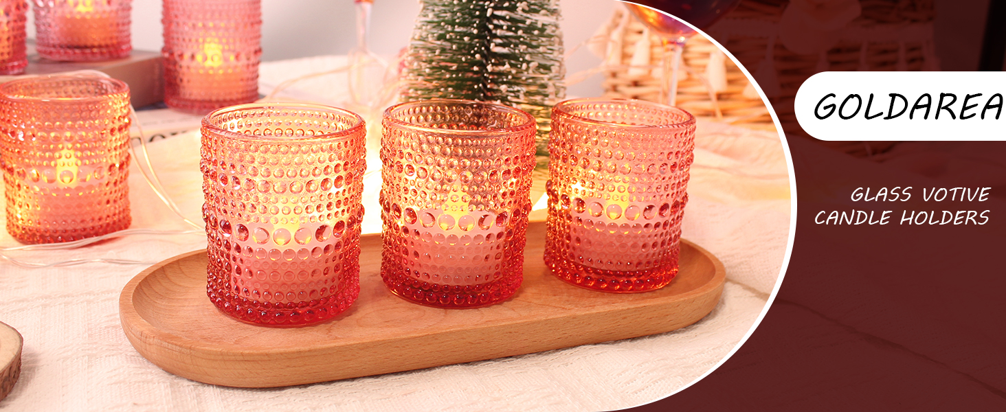 【حاملات شموع كبيرة】: حامل ضوء الشاي GoldArea مصنوع بشكل جيد، ولا يحتوي على فقاعات، وهو أنيق في التصميم، والجدار الزجاجي ذو الملمس الفقاعي يجعل أي مساحة متألقة. تعتبر حاملات الشموع الأنيقة والجميلة على شكل ضوء الشاي هدية راقية لأي مناسبة. سوف يتألقون على طاولة الطعام، بشكل نبيل وأنيق.